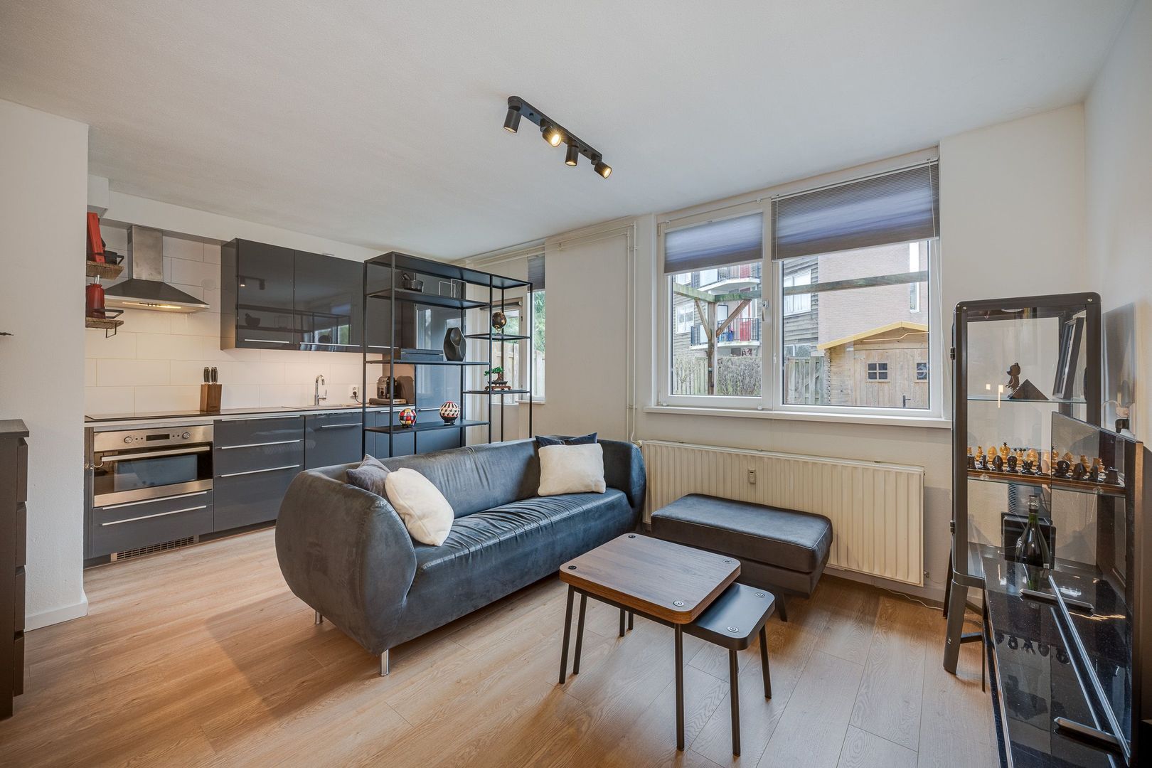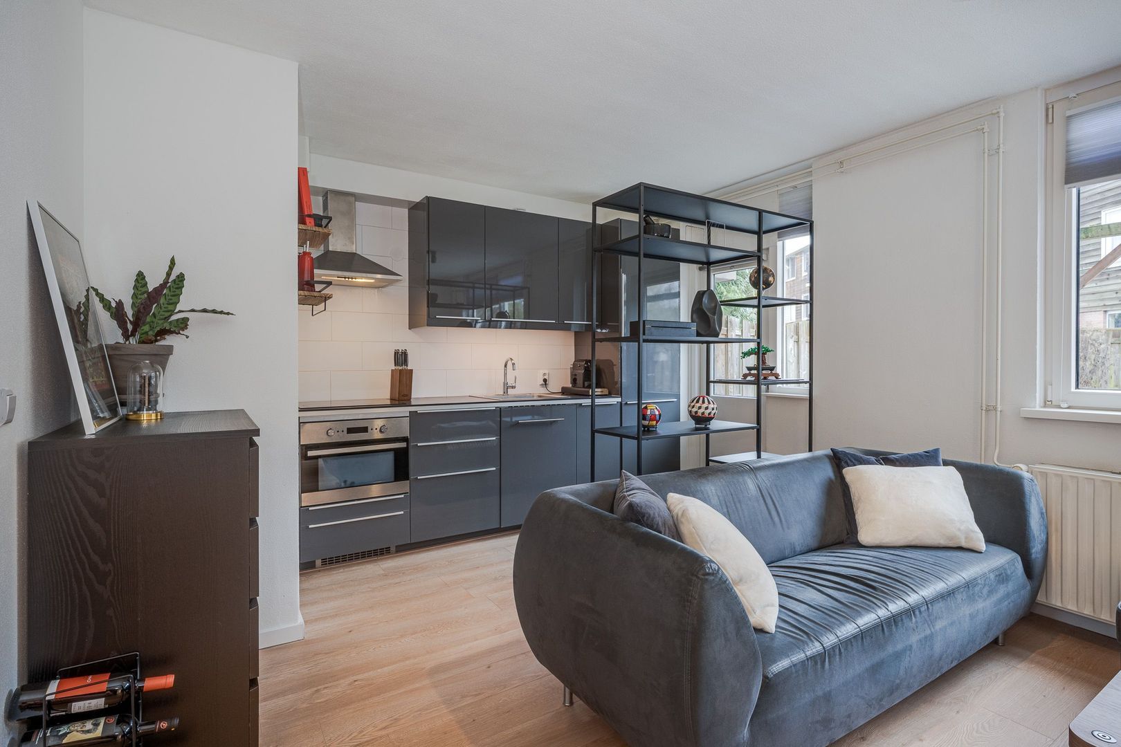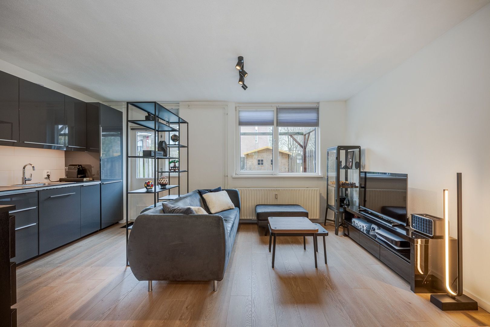 De woonkamer is een fijne, lichte leefruimte met een laminaatvloer en een open keuken. Hier kun je na je werk lekker neerploffen op de bank, een serie kijken of vrienden uitnodigen om te komen eten. De keuken is voorzien van een 4-pits inductiekookplaat, vaatwasser, afzuigkap en koelkast – dus gewoon alles wat je nodig hebt.