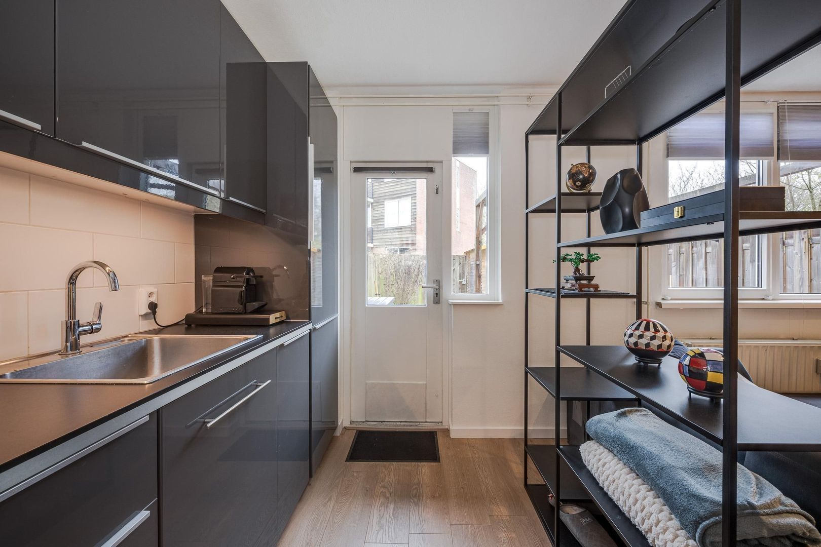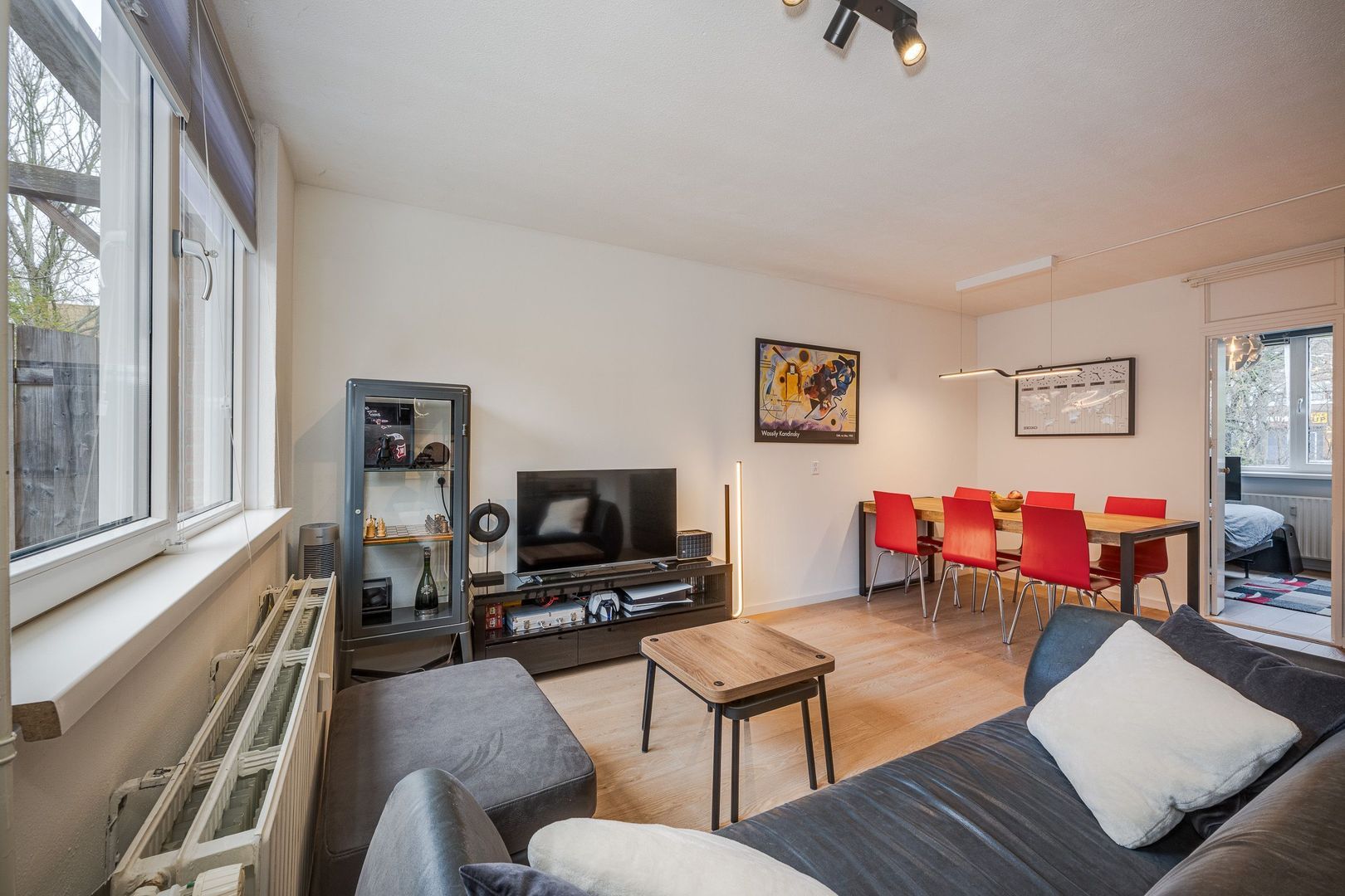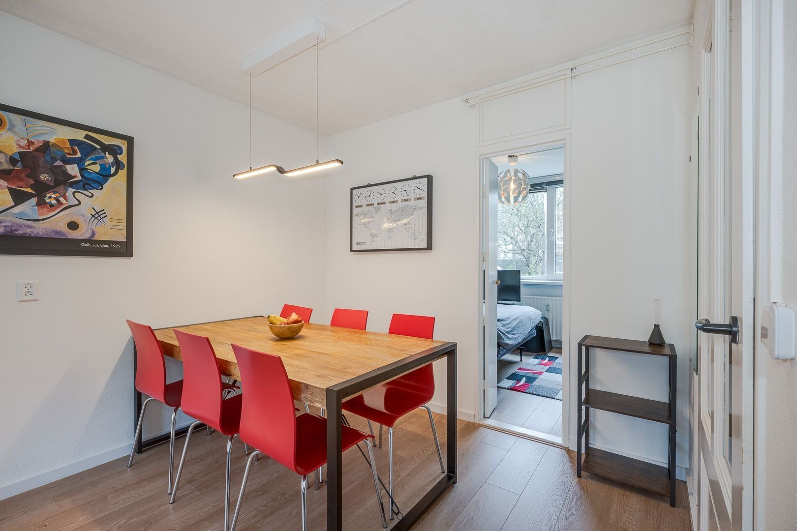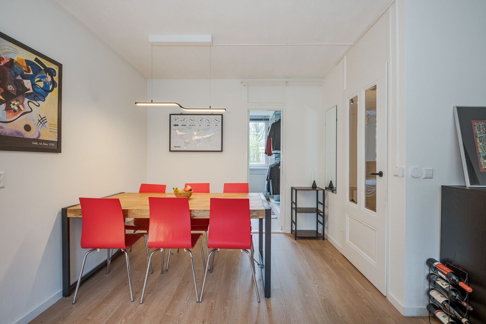 De woonkamer is een fijne, lichte leefruimte met een laminaatvloer en een open keuken. Hier kun je na je werk lekker neerploffen op de bank, een serie kijken of vrienden uitnodigen om te komen eten. De keuken is voorzien van een 4-pits inductiekookplaat, vaatwasser, afzuigkap en koelkast – dus gewoon alles wat je nodig hebt.