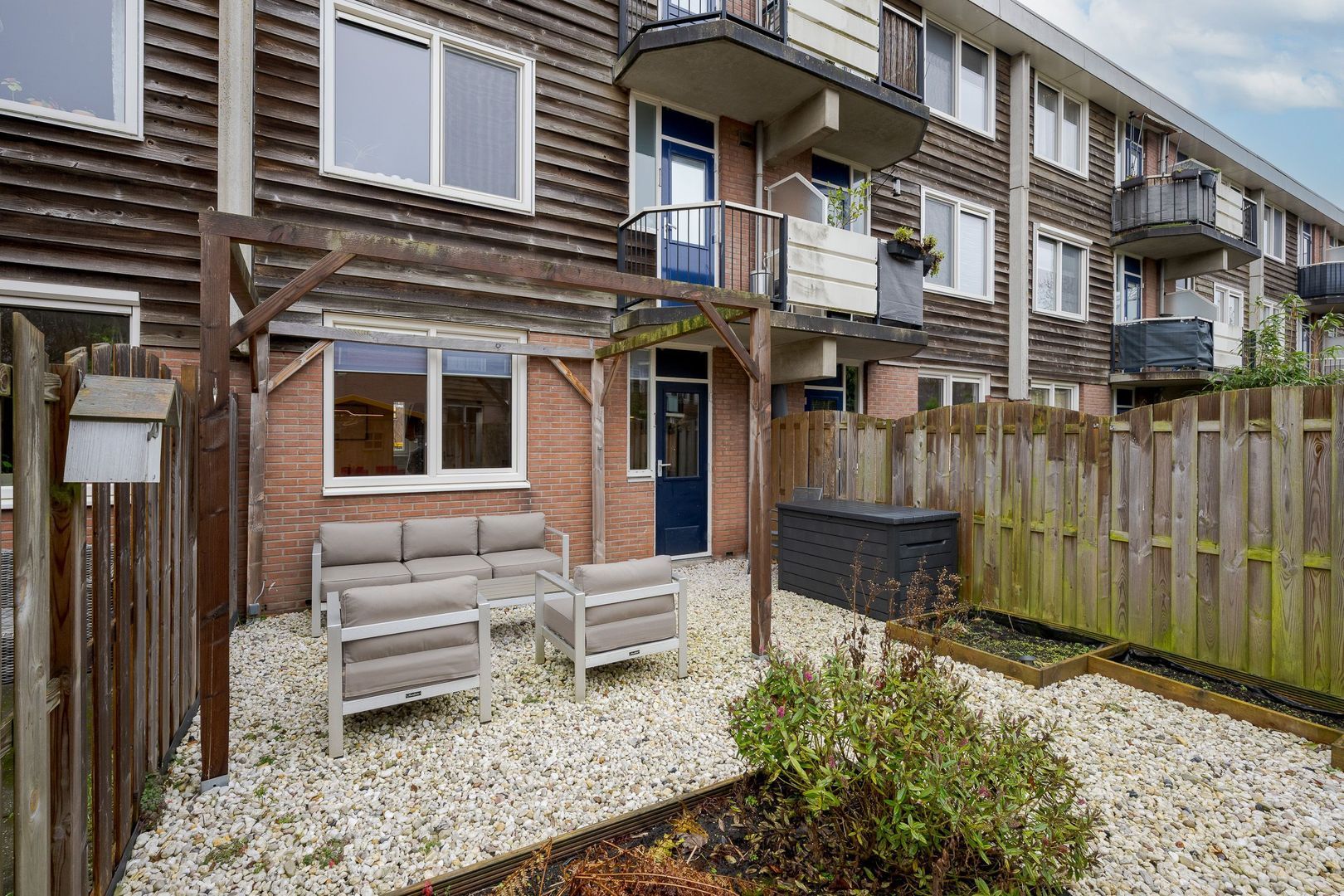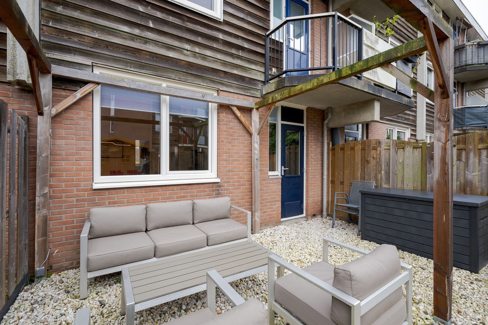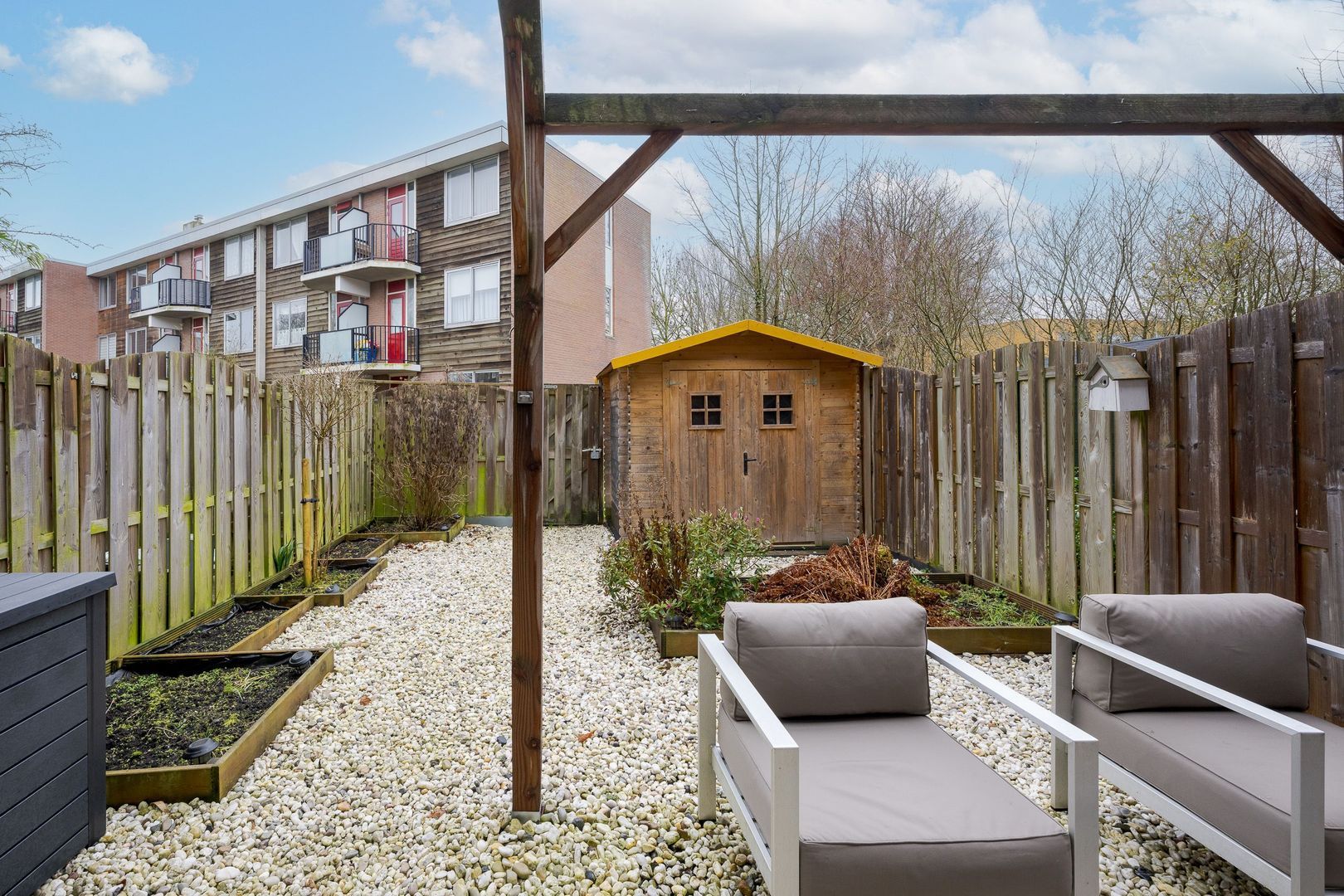 Vanuit de keuken loop je direct de tuin in. En dat is echt de grote plus van deze woning. De tuin ligt op het westen, waardoor je hier ’s middags en ’s avonds heerlijk van de zon geniet. Perfect voor een borrel na werk, een zomerse barbecue of gewoon rustig met een boek in de zon. Daarnaast is er een achterom en een houten berging, ideaal voor je fiets en extra opslag.