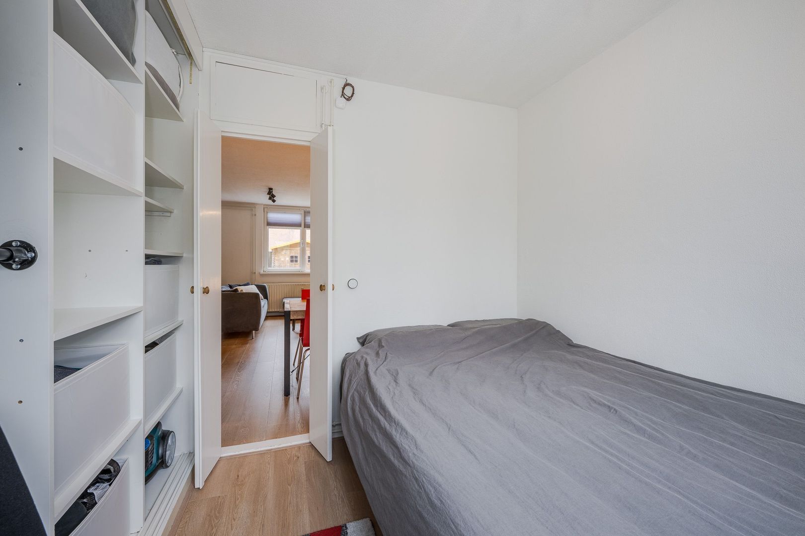 Aan de voorzijde van de woning bevindt zich de slaapkamer. Hier is voldoende ruimte voor een tweepersoonsbed en er is een ruime inbouwkast aanwezig over de volledige diepte van de kamer. Zo heb je meer dan genoeg plek voor je kleding en spullen.