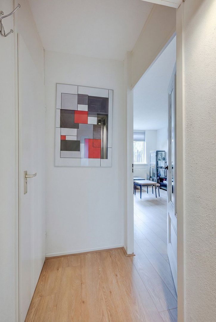 Via de centrale entree met brievenbussen bereik je je eigen voordeur. Je komt binnen in de gang met meterkast en ruimte voor een kapstok en schoenen.