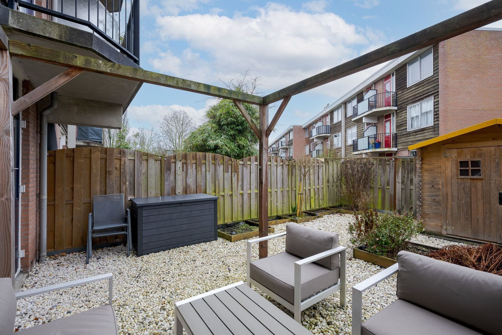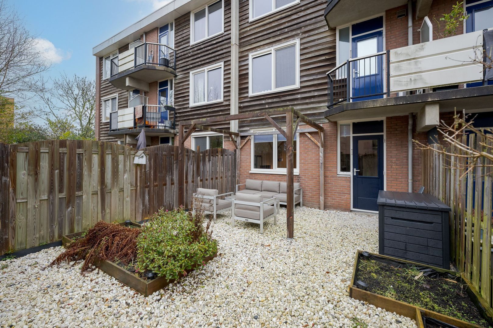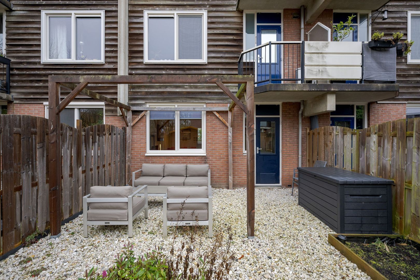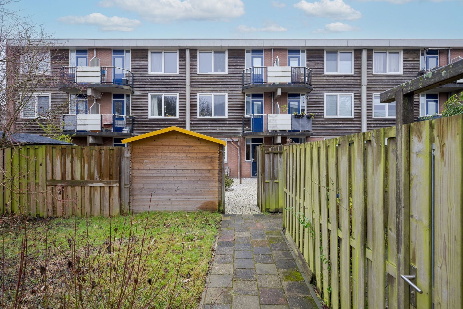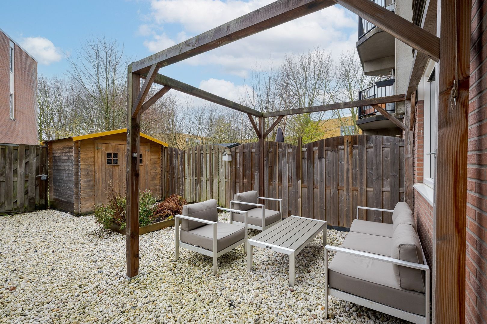 Vanuit de keuken loop je direct de tuin in. En dat is echt de grote plus van deze woning. De tuin ligt op het westen, waardoor je hier ’s middags en ’s avonds heerlijk van de zon geniet. Perfect voor een borrel na werk, een zomerse barbecue of gewoon rustig met een boek in de zon. Daarnaast is er een achterom en een houten berging, ideaal voor je fiets en extra opslag.
