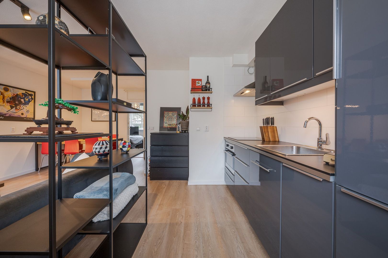 De woonkamer is een fijne, lichte leefruimte met een laminaatvloer en een open keuken. Hier kun je na je werk lekker neerploffen op de bank, een serie kijken of vrienden uitnodigen om te komen eten. De keuken is voorzien van een 4-pits inductiekookplaat, vaatwasser, afzuigkap en koelkast – dus gewoon alles wat je nodig hebt.