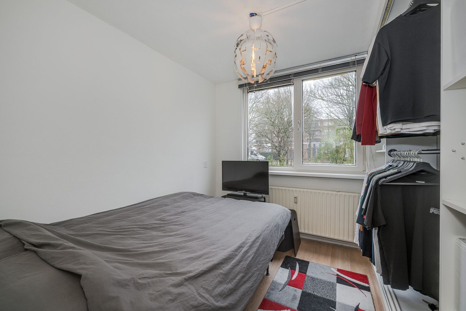 Aan de voorzijde van de woning bevindt zich de slaapkamer. Hier is voldoende ruimte voor een tweepersoonsbed en er is een ruime inbouwkast aanwezig over de volledige diepte van de kamer. Zo heb je meer dan genoeg plek voor je kleding en spullen.