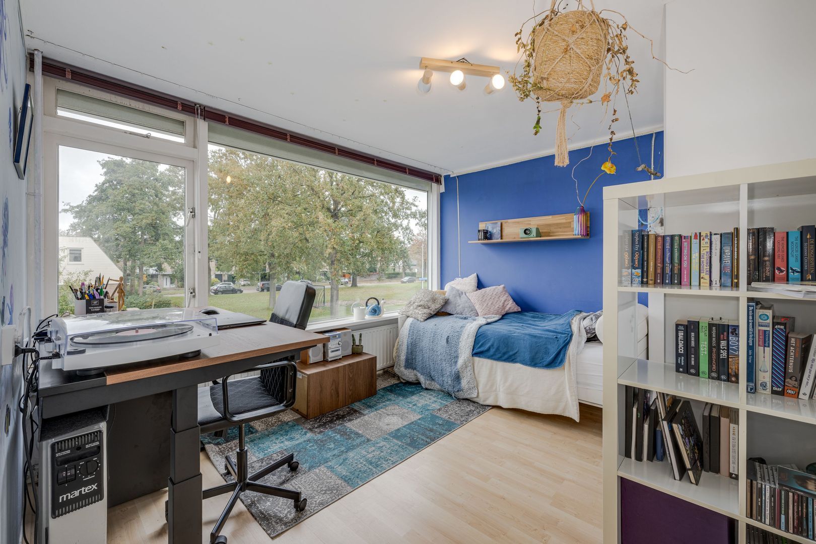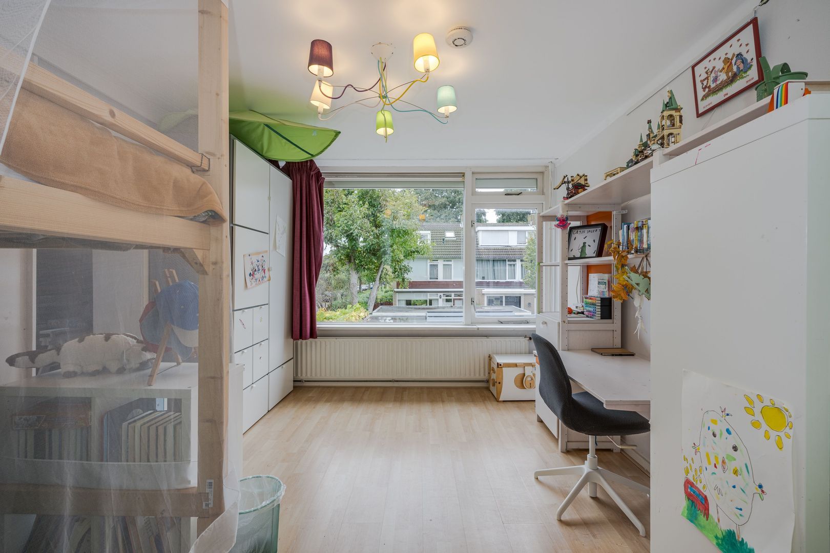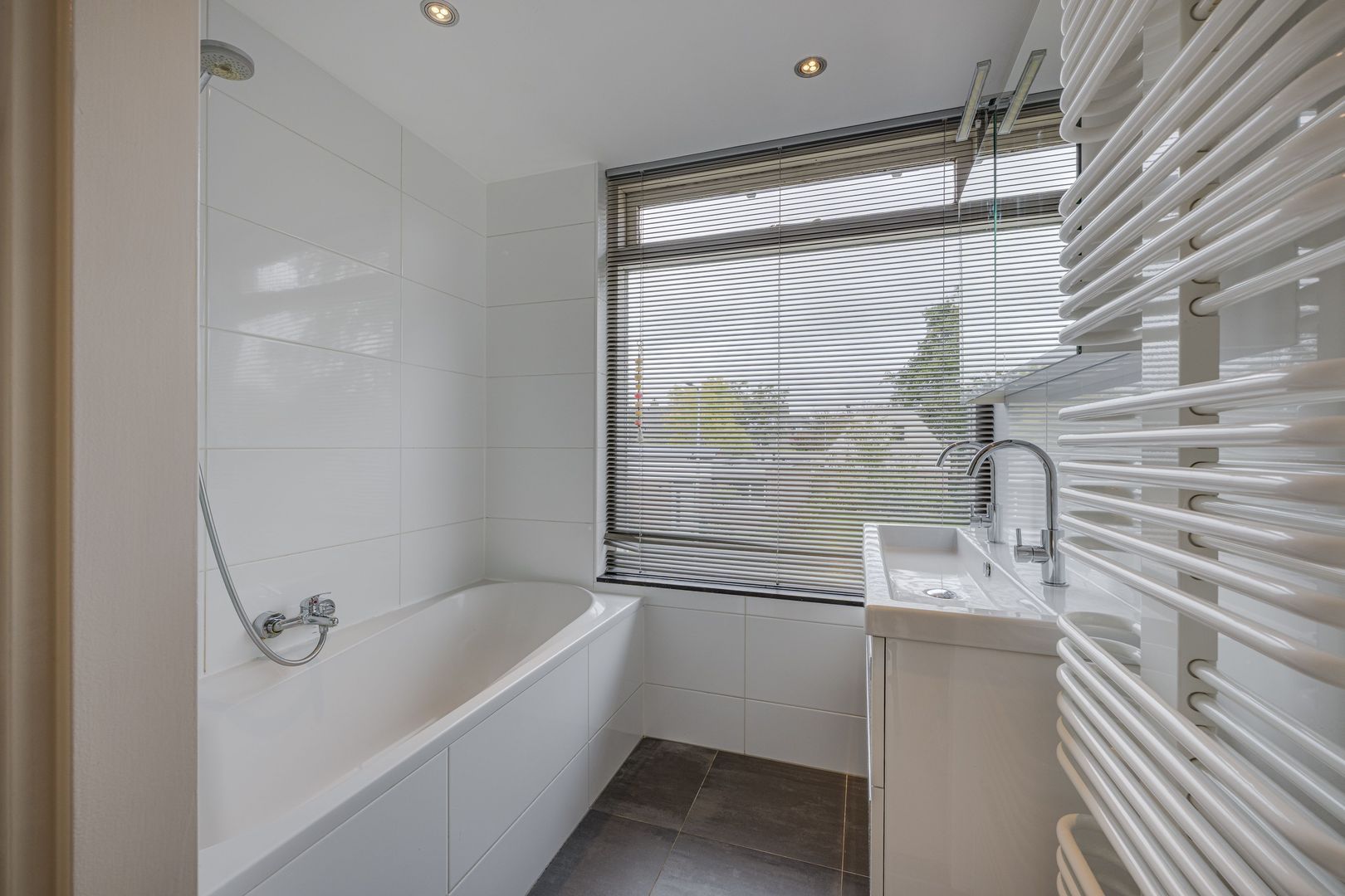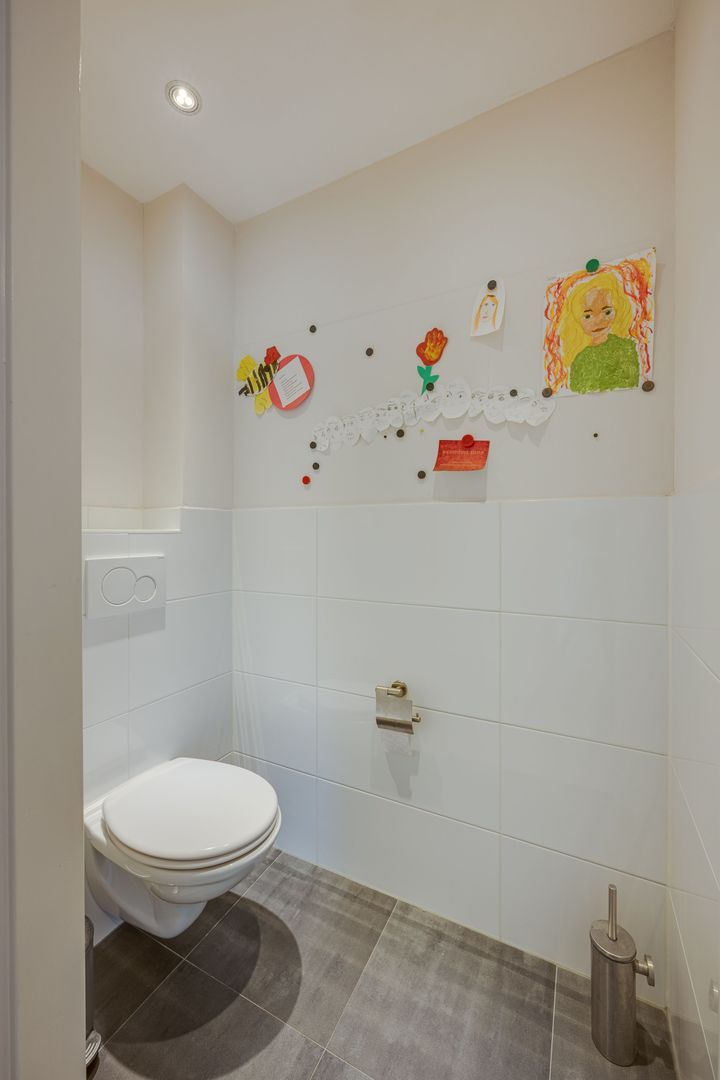 Eerste verdieping: Overloop met een opvallend ruim toilet en een vaste kast. Aan de voorzijde bevindt zich de badkamer met dubbele wastafel en ligbad, daarnaast een slaapkamer met vaste kast en leuk uitzicht over het veld. Aan de achterzijde ligt een zeer ruime slaapkamer, extra groot dankzij de zijaanbouw, waardoor er eenvoudig een inloopkast of bergruimte gecreëerd kan worden. Daarnaast is er nog een kleinere kamer, ideaal als werkkamer of babykamer.