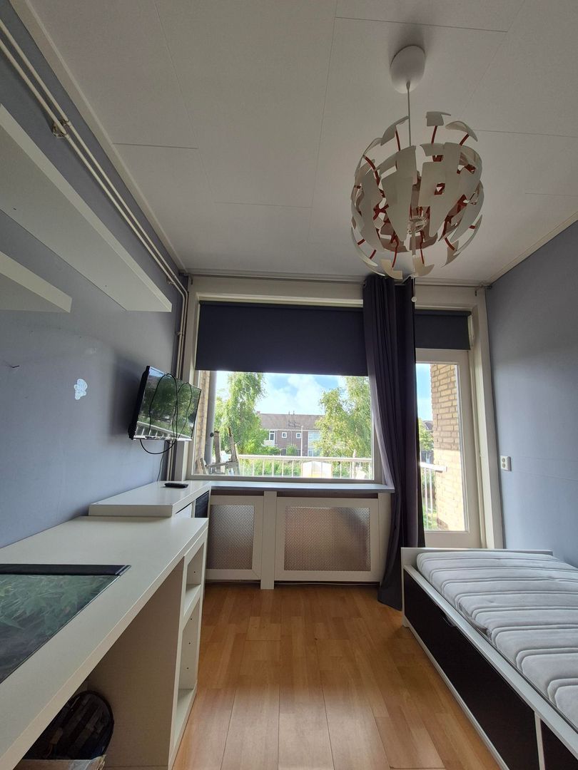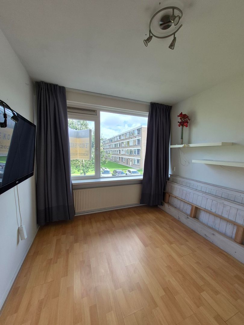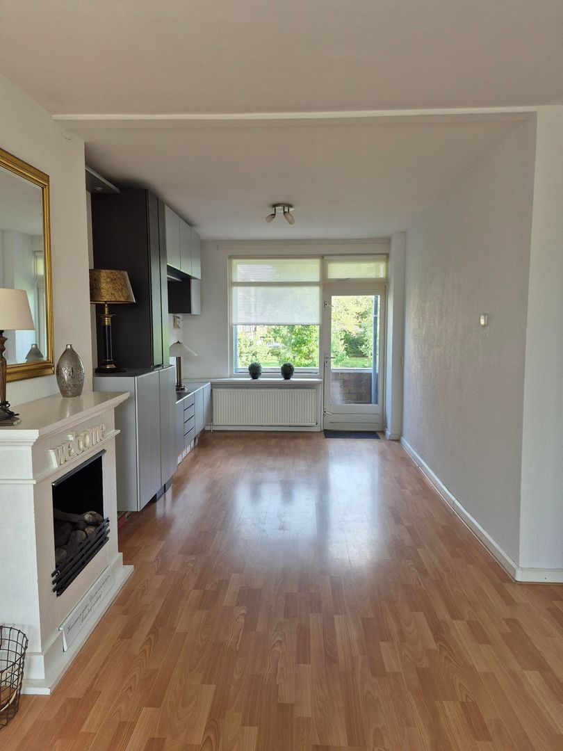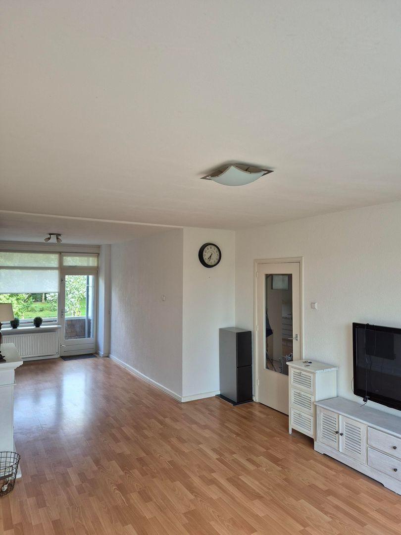 Indeling: ruime hal met aan de voorzijde een slaapkamer(2.8x2.8) met balkon, vervolgens de deur de sfeervolle en vooral lichte woonkamer(9.3x2.9x3.8) in hier is aan de achterzijde een balkon met vrij zicht te vinden ook de als de combi ketel (2008), in de woonkamer ligt laminaat en de muren zijn voorzien van fijne spachtelputz. In de hal is een grote Amerikaanse koelkast aanwezig, ook het hangende toilet en badkamer zijn vanuit de hal te betreden, deze zijn zeer recent vernieuwd, en in nieuwstaat. De tweede slaapkamer (3.10x3.00) ligt aan de achterzijde, overal behalve in de keuken ligt hetzelfde laminaat.
