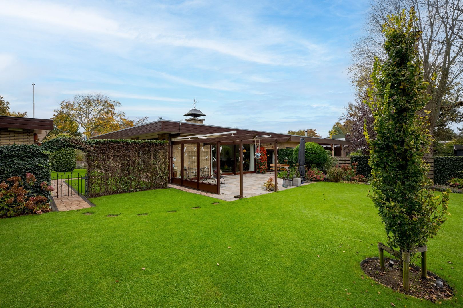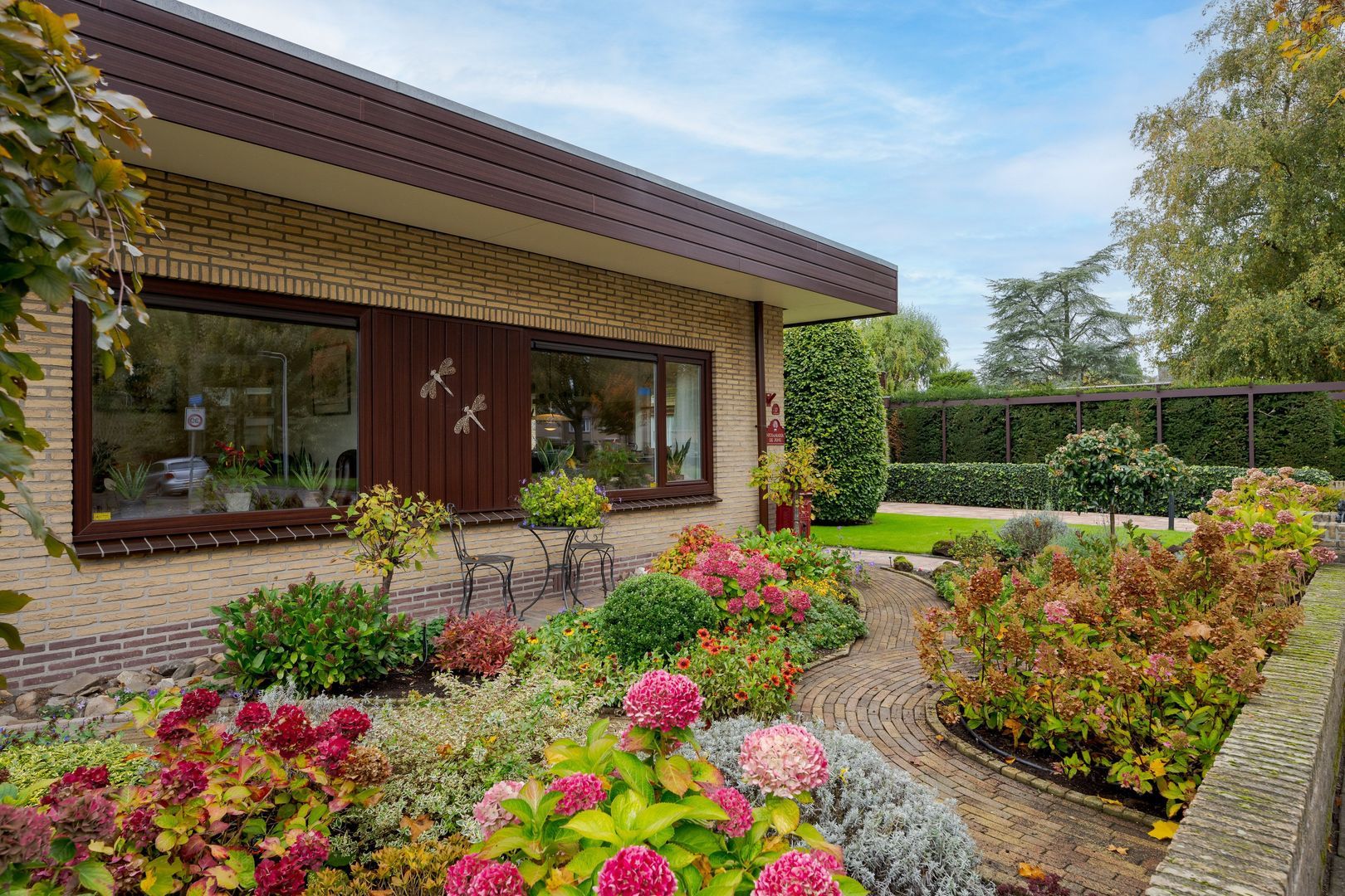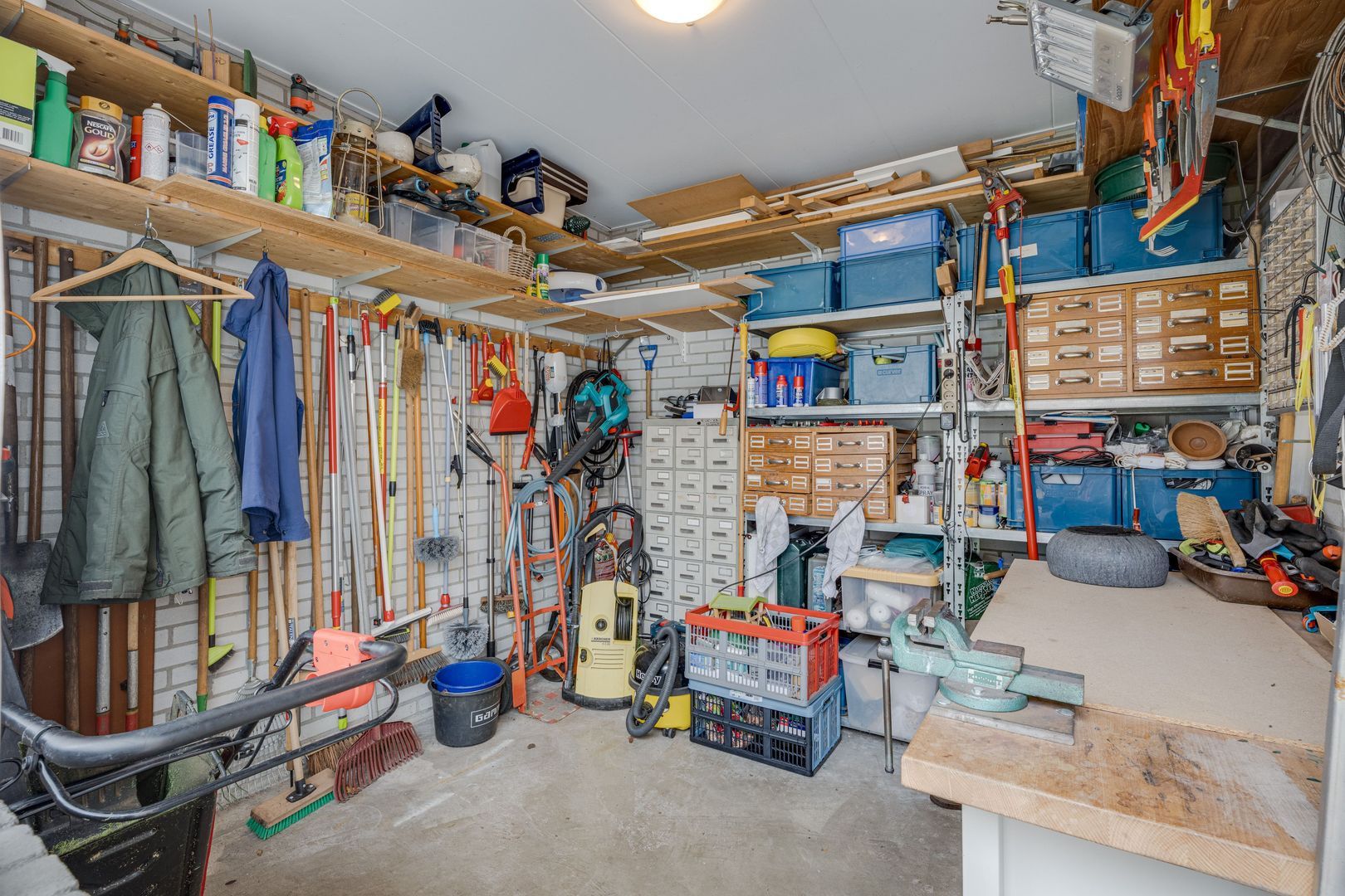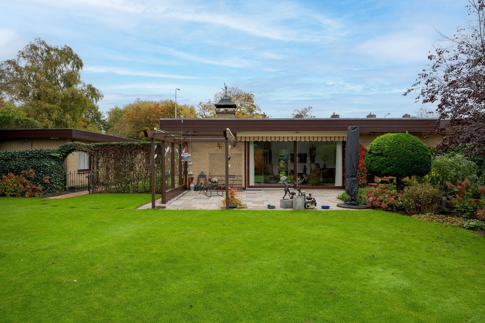 De achtertuin is werkelijk een groot pluspunt van deze woning: met een breedte en diepte van circa 19 x 19 meter en een ligging op het zuiden geniet u hier van de zon tot zonsondergang. Aan de zijkant van de woning bevindt zich de later aangebouwde garage/hobbyruimte, met daarvoor een ruime oprit.