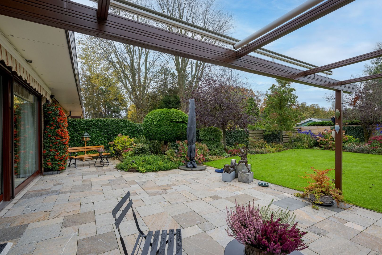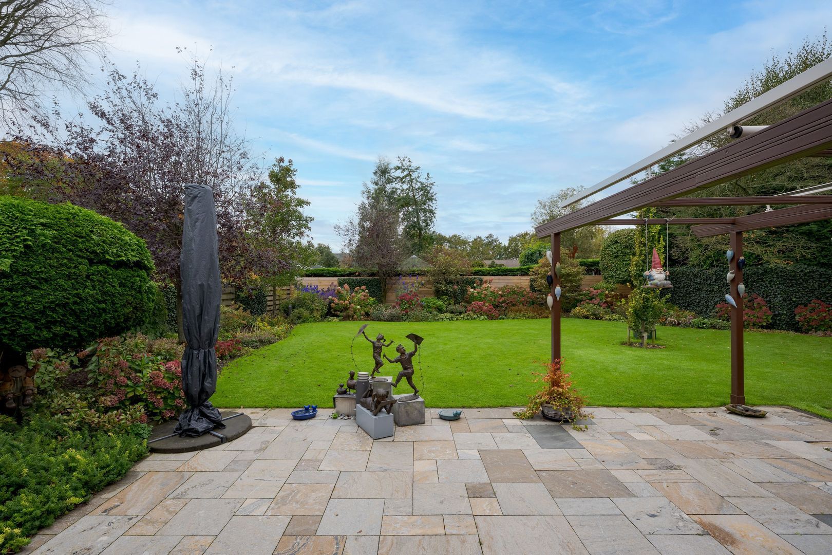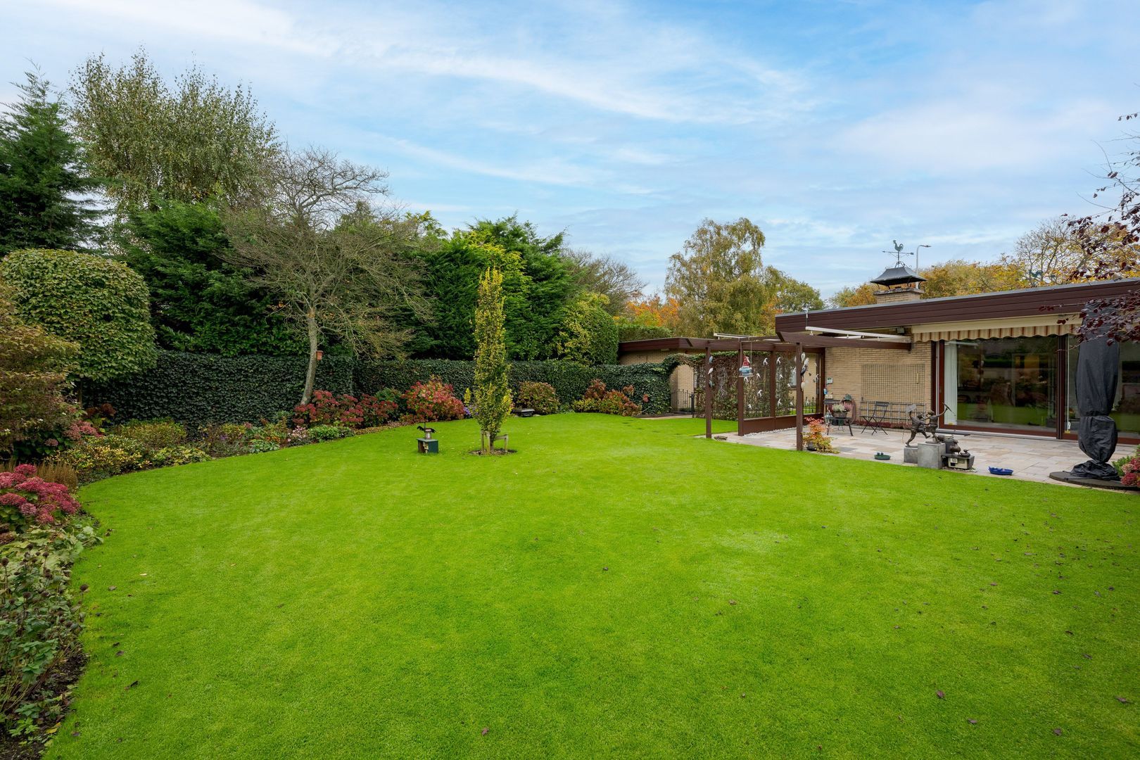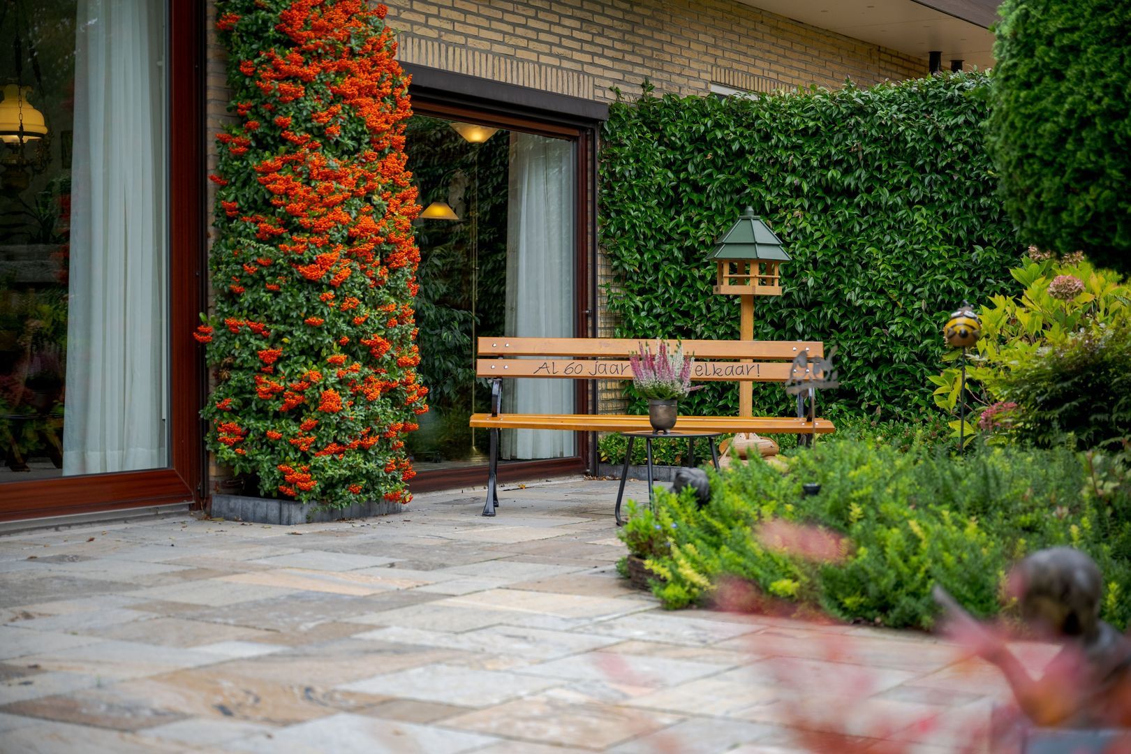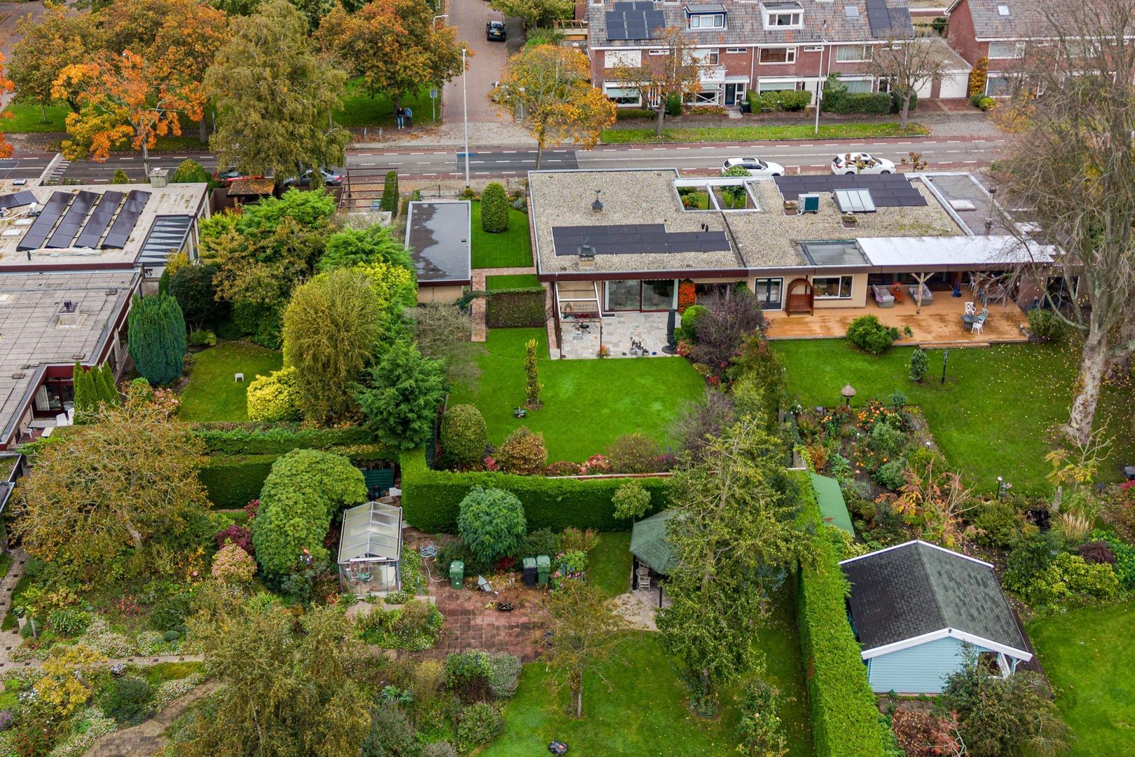 De achtertuin is werkelijk een groot pluspunt van deze woning: met een breedte en diepte van circa 19 x 19 meter en een ligging op het zuiden geniet u hier van de zon tot zonsondergang. Aan de zijkant van de woning bevindt zich de later aangebouwde garage/hobbyruimte, met daarvoor een ruime oprit.