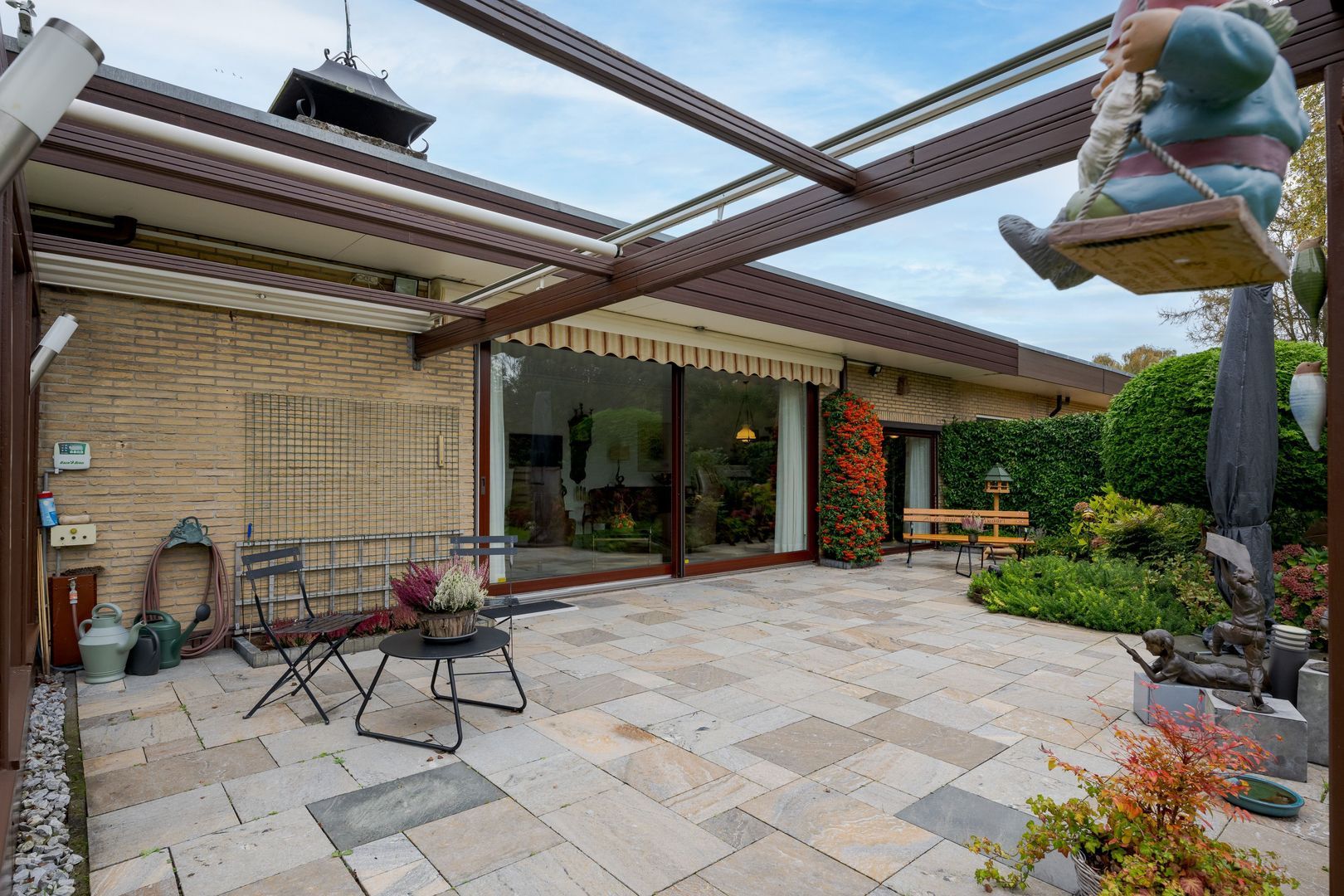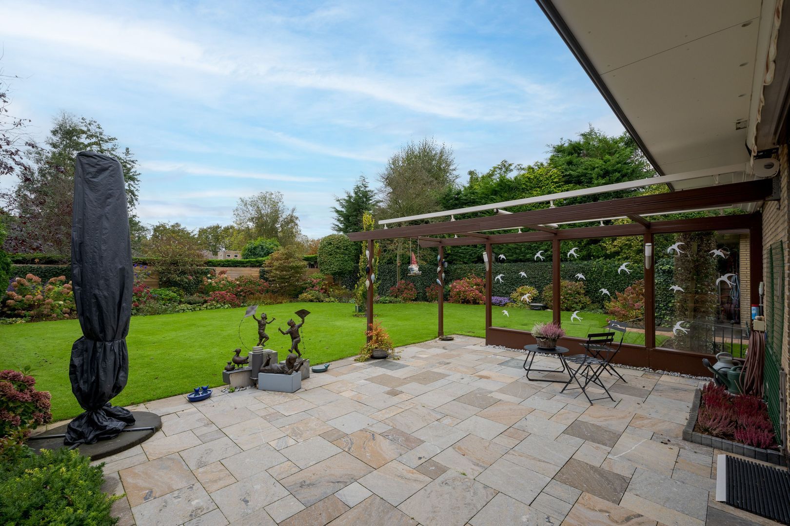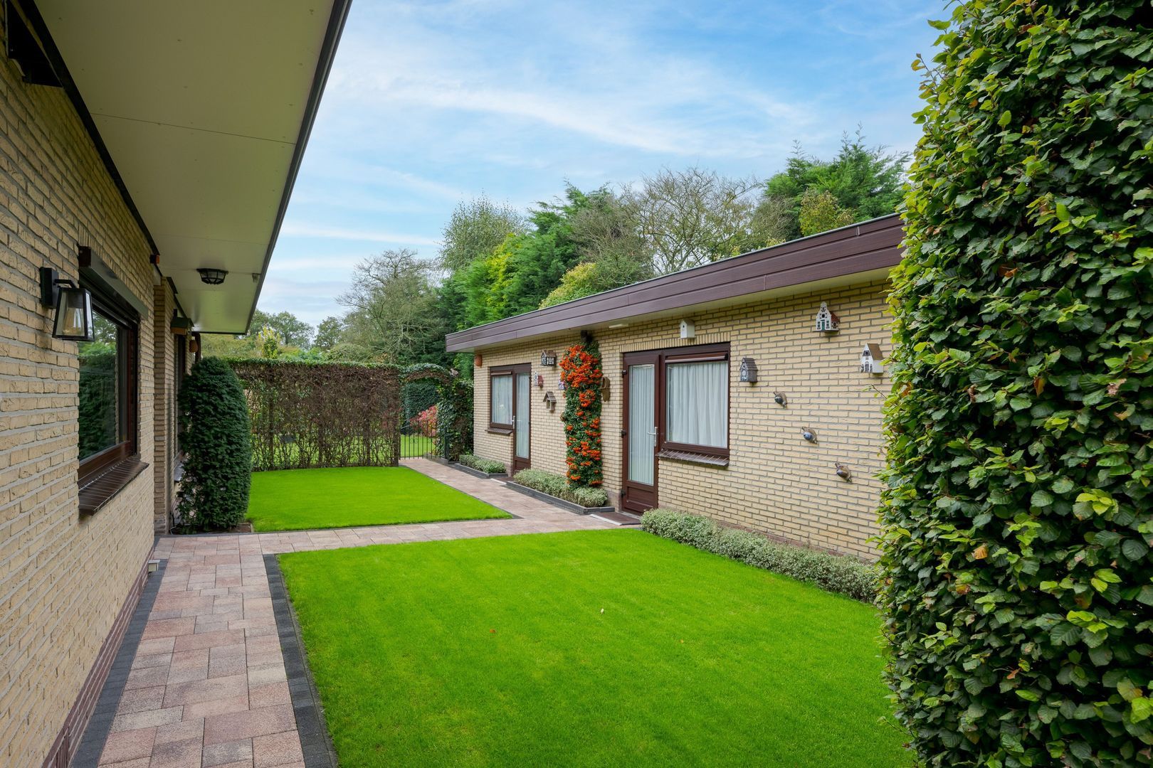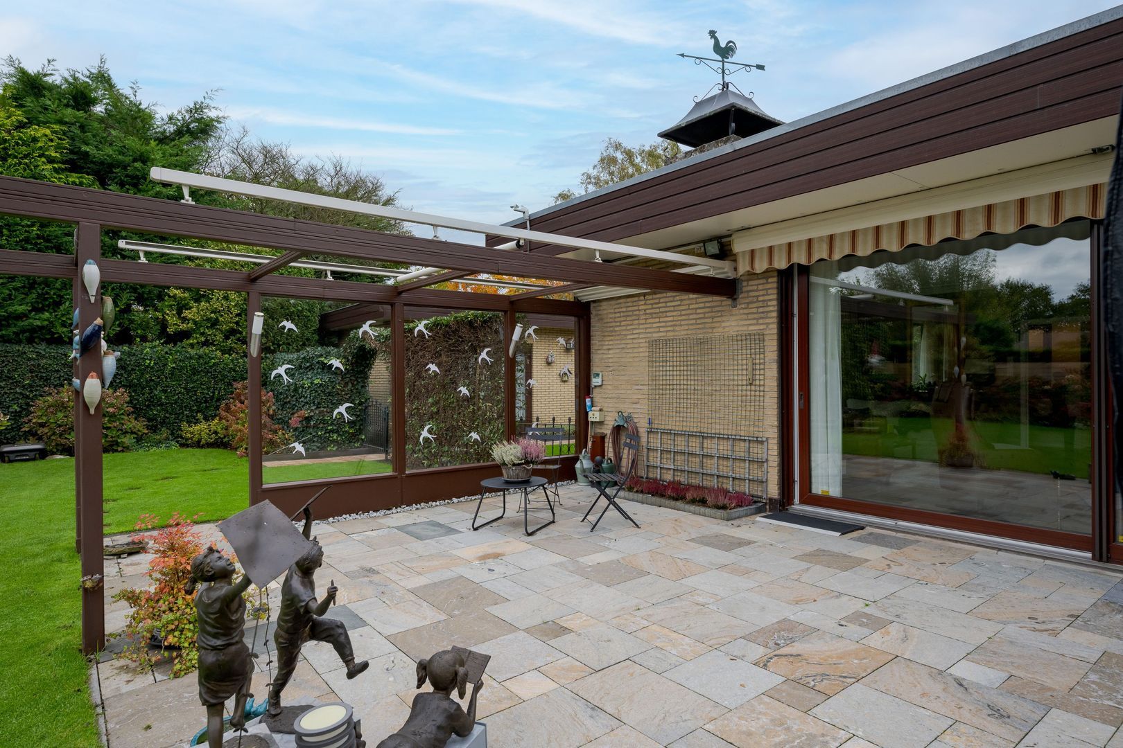 De achtertuin is werkelijk een groot pluspunt van deze woning: met een breedte en diepte van circa 19 x 19 meter en een ligging op het zuiden geniet u hier van de zon tot zonsondergang. Aan de zijkant van de woning bevindt zich de later aangebouwde garage/hobbyruimte, met daarvoor een ruime oprit.