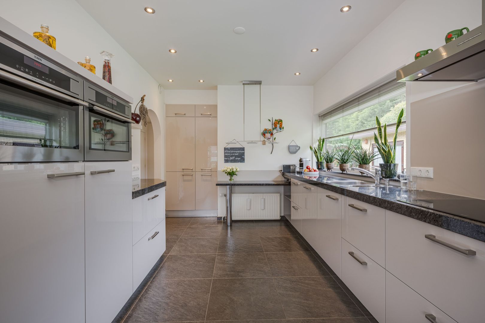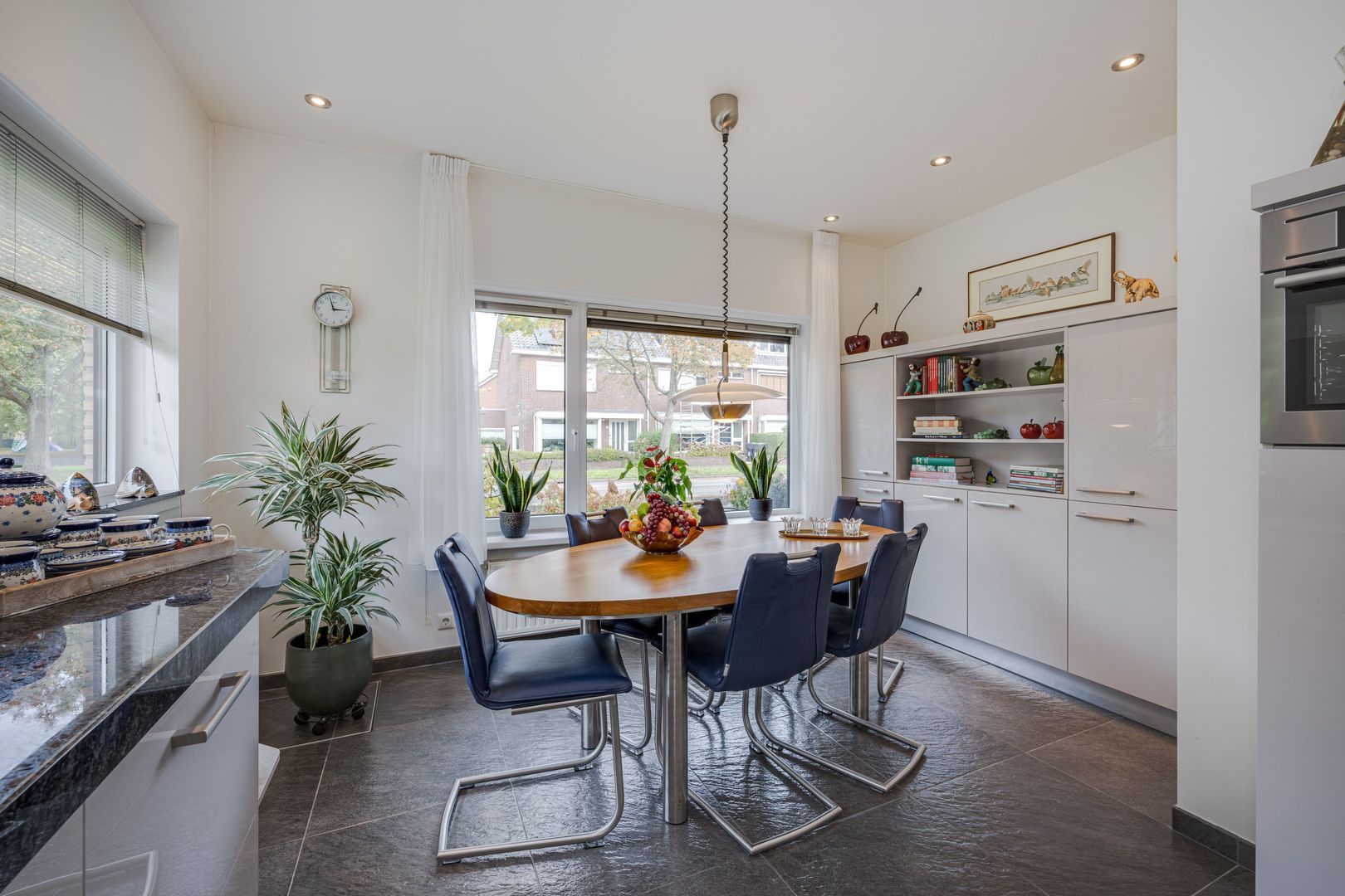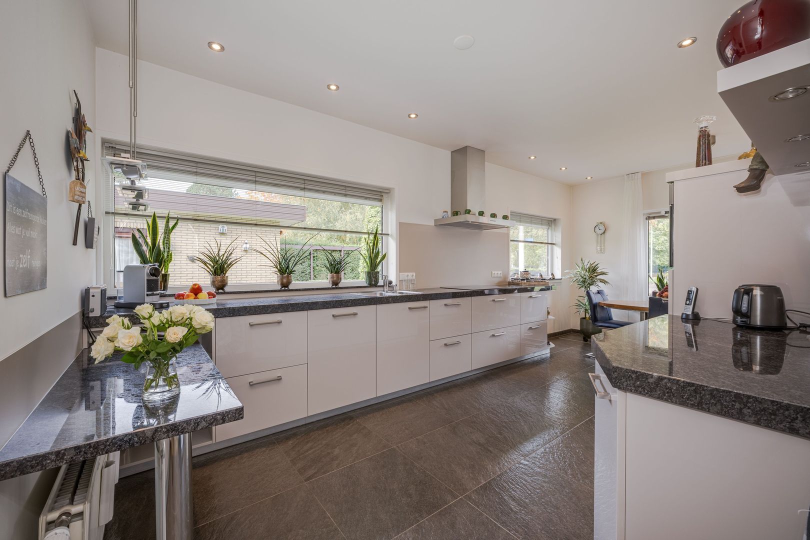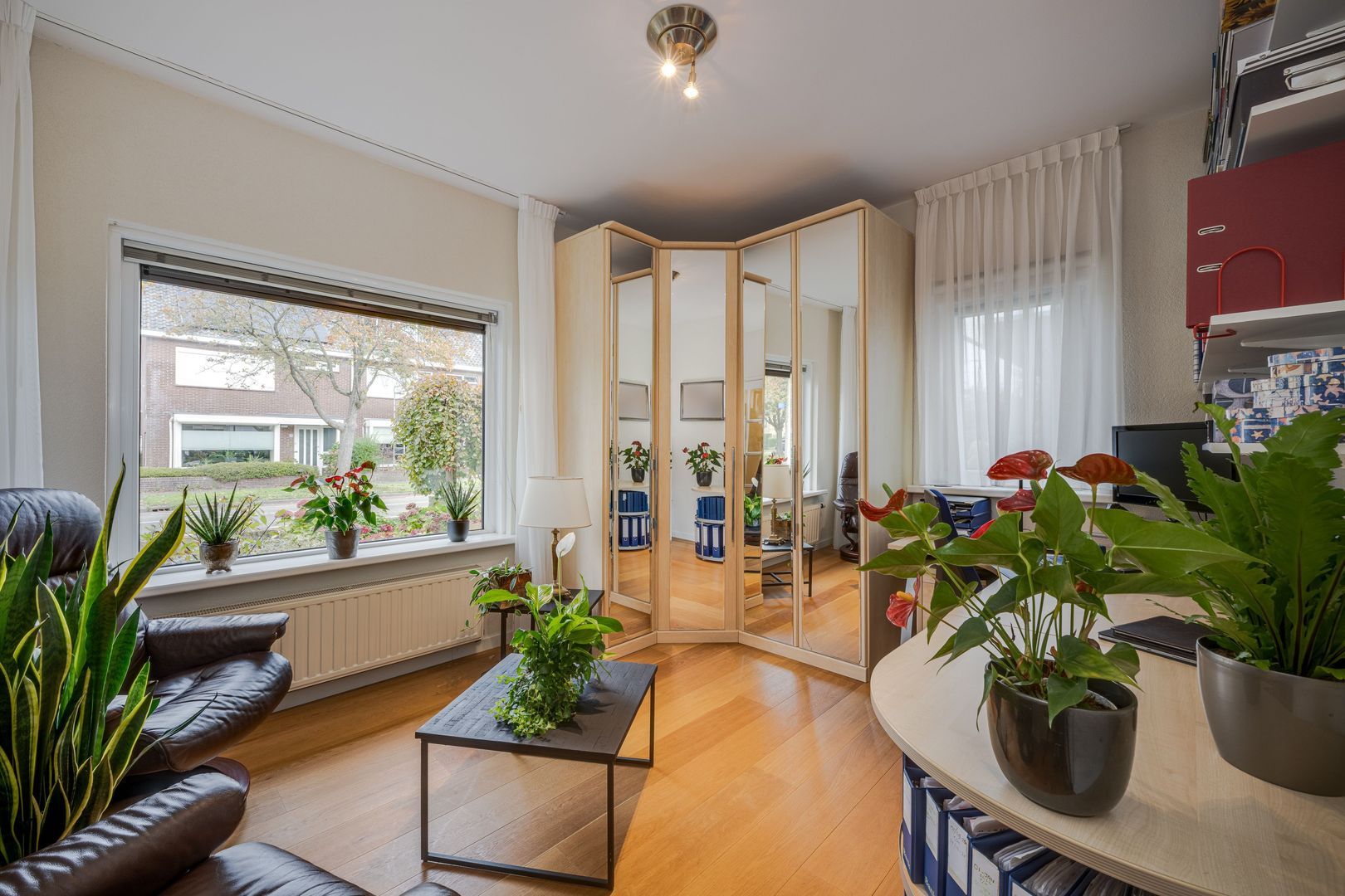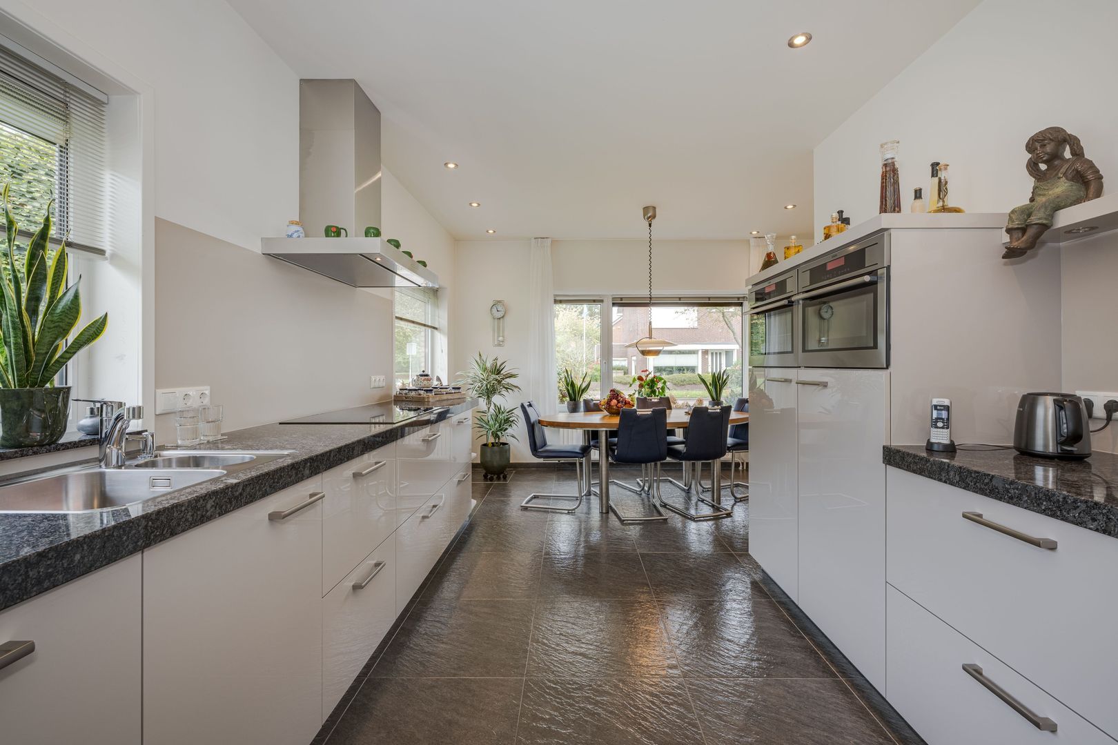Aan het einde van de gang is daarnaast nog een extra kamer aanwezig, die momenteel in gebruik is als kantoor, maar zich uitstekend leent als tweede slaapkamer of logeerruimte. Aan het begin van de gang bevindt zich de royale leefkeuken. Deze is uitgerust met diverse inbouwapparatuur, biedt veel bergruimte en heeft aan de voorzijde van de woning een prettige plek voor een eettafel.