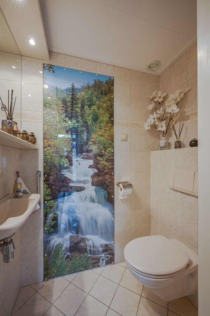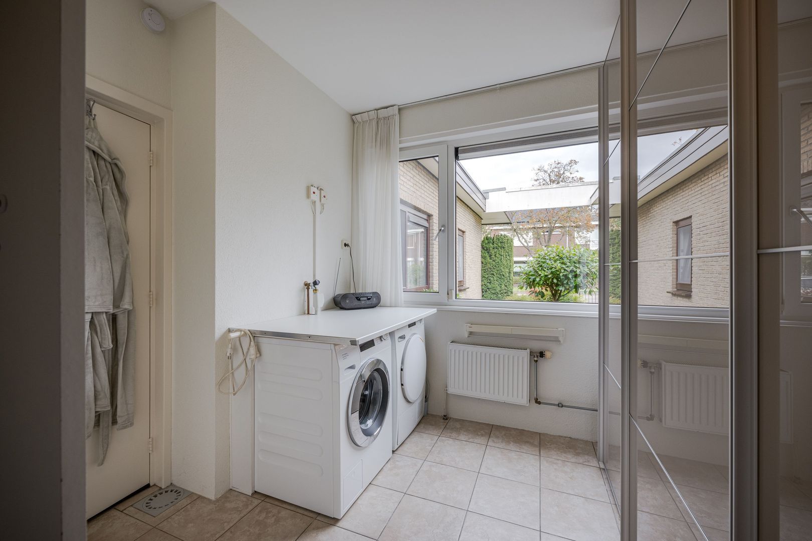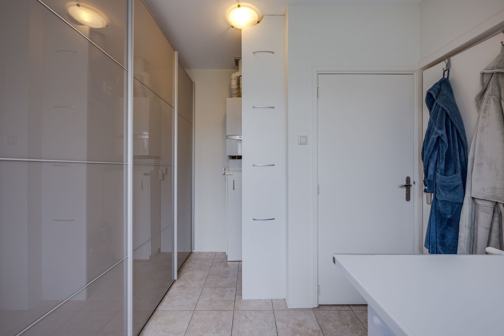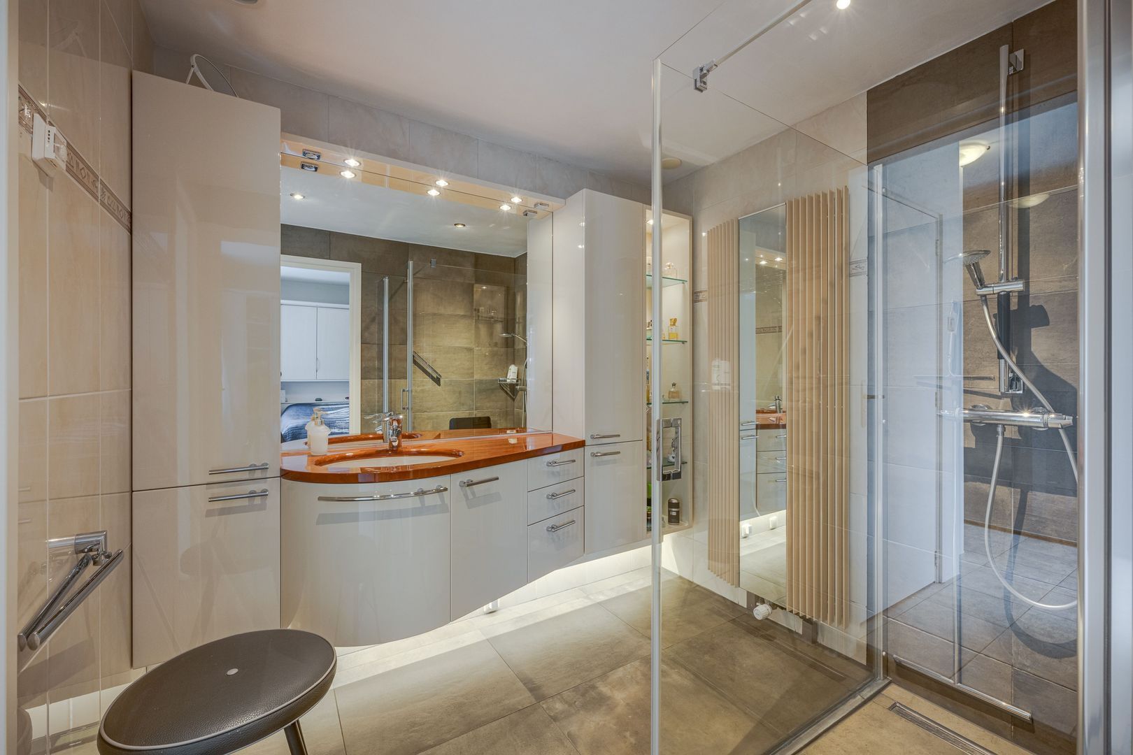 Verder in de woning vindt u aan het einde van de gang een toilet, met daarnaast de slaapkamer met badkamer en suite. De badkamer is modern afgewerkt en voorzien van een inloopdouche en wastafelmeubel. In de separate wasruimte bevindt zich een tweede toilet, extra bergruimte en de CV-installatie (Vaillant VHR ecoTEC plus, 2021).
