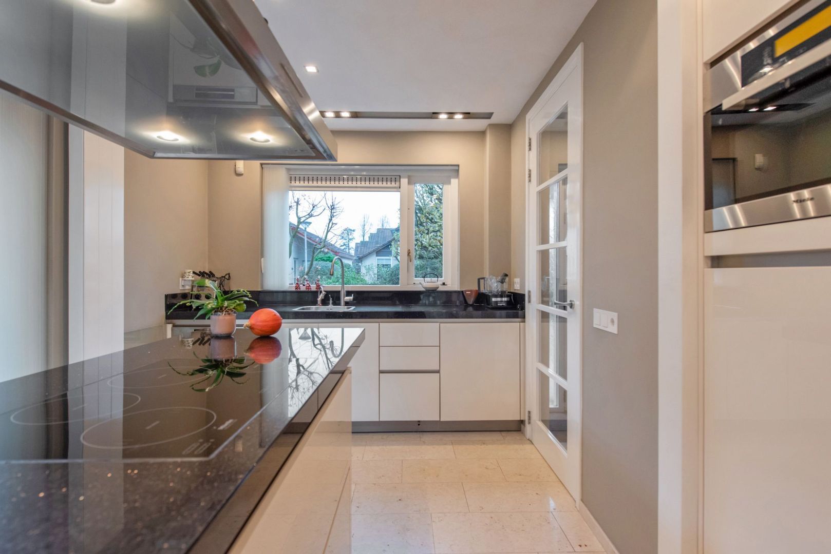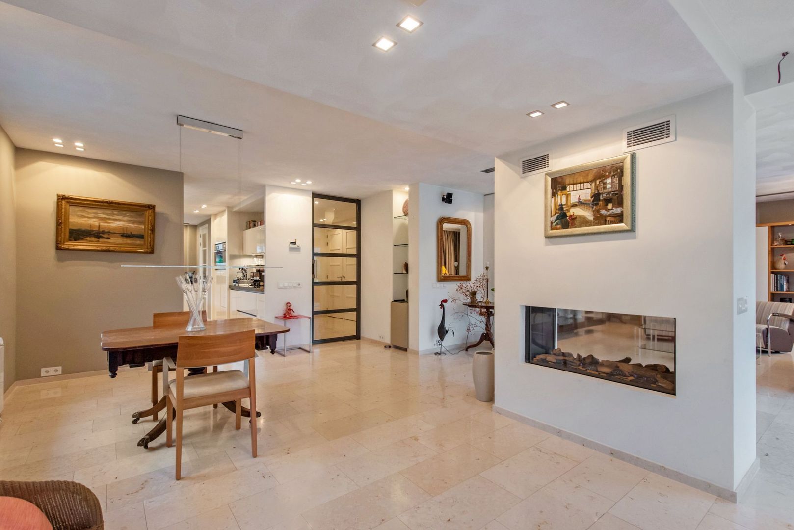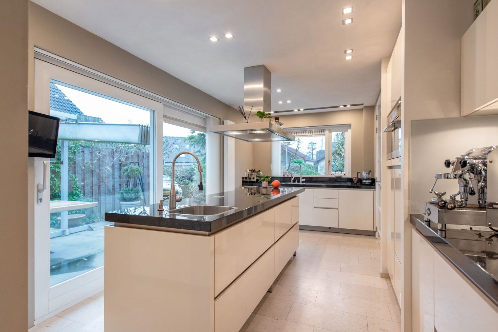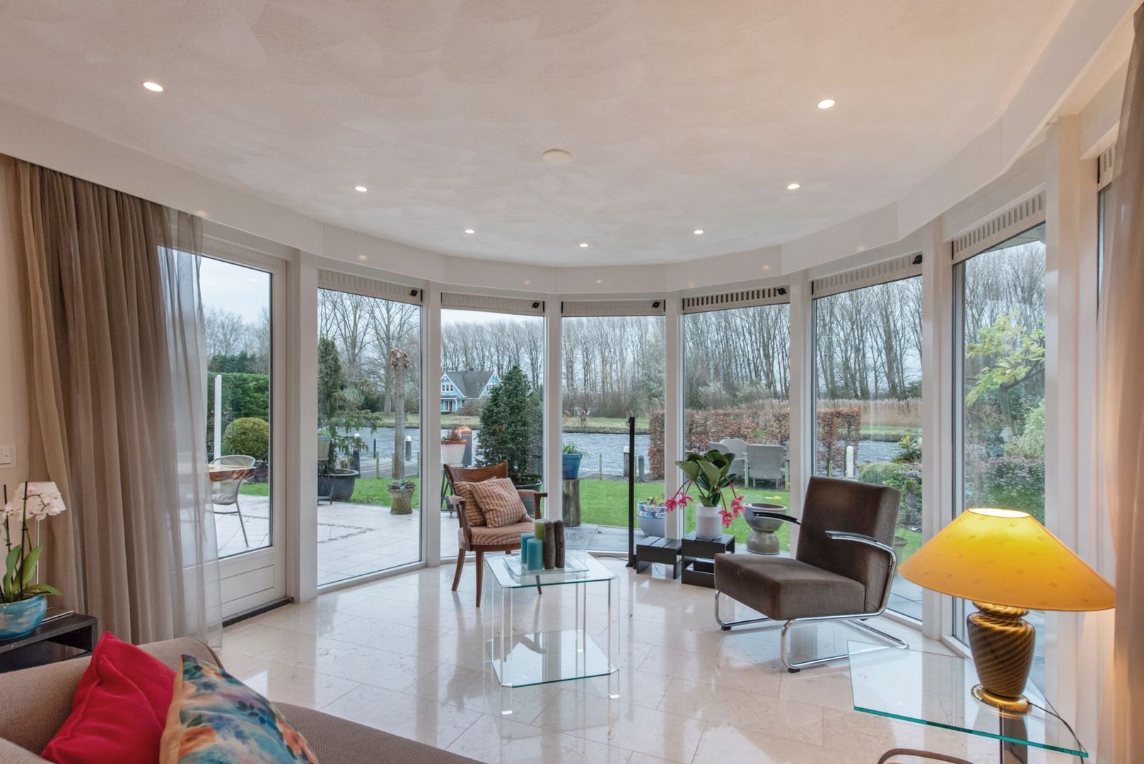 De living is licht, ruim en sfeervol. Meerdere zitjes zijn mogelijk, met in het ronde gedeelte een prachtig uitzicht over de Vliet richting Leidschendam, of de andere kant op richting Leiden. De woonkamer beschikt over zowel een open haard als een gashaard, diverse op maat gemaakte kasten en een schuifpui naar de zonnige tuin op het zuidoosten. De luxe keuken is ruim, voorzien van veel kastruimte en een centraal eiland. Dankzij de schuifpui wordt in de zomer het terras een verlengstuk van de keuken – perfect voor lange zomerdagen en gezellige diners buiten.