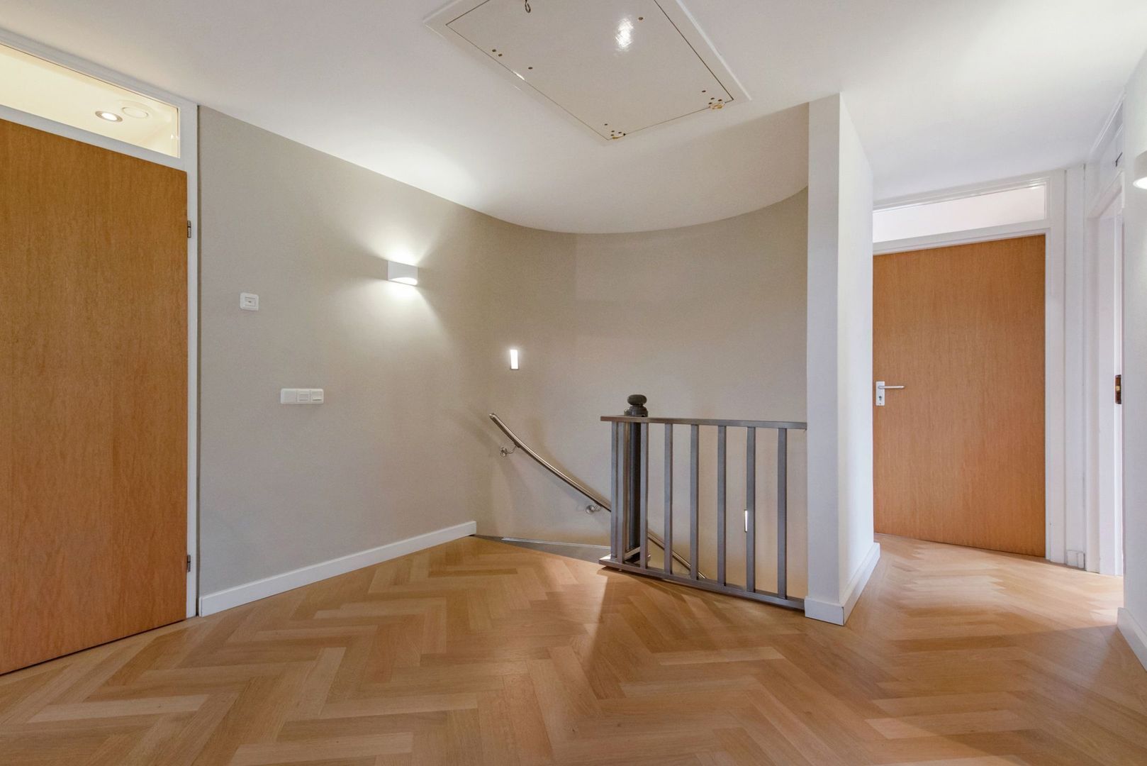 Via de trap bereikt u de eerste verdieping. De ruime overloop geeft toegang tot twee slaapkamers aan de voorkant, beide met veel bergruimte achter knieschotten en toegang tot het balkon. Eén slaapkamer heeft daarnaast toegang tot een vide. Verder is er een badkamer met inloopdouche, wastafel en sauna. De derde slaapkamer biedt ook extra bergruimte en een deur naar het dakterras met prachtig uitzicht over de Vliet. De master bedroom is een ware luxe suite, met inloopkast, toegang tot de badkamer met XL-ligbad, dubbele wastafel, inloopdouche met Sun shower en een bidet, én een schuifpui naar het dakterras. Op de overloop bevindt zich een extra toilet en in de berging hangt de Remeha Tzerra Ace-Matic uit 2024, hier staan ook de wasmachine en droger. Via een vlizotrap bereikt u de ruime vliering van circa 14 meter, ideaal voor opslag.