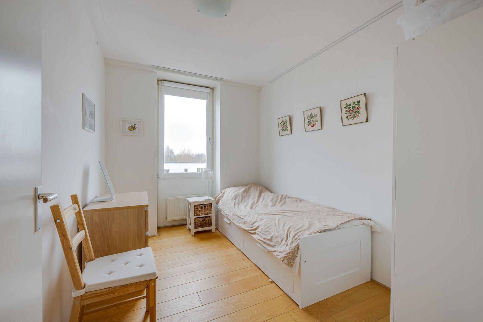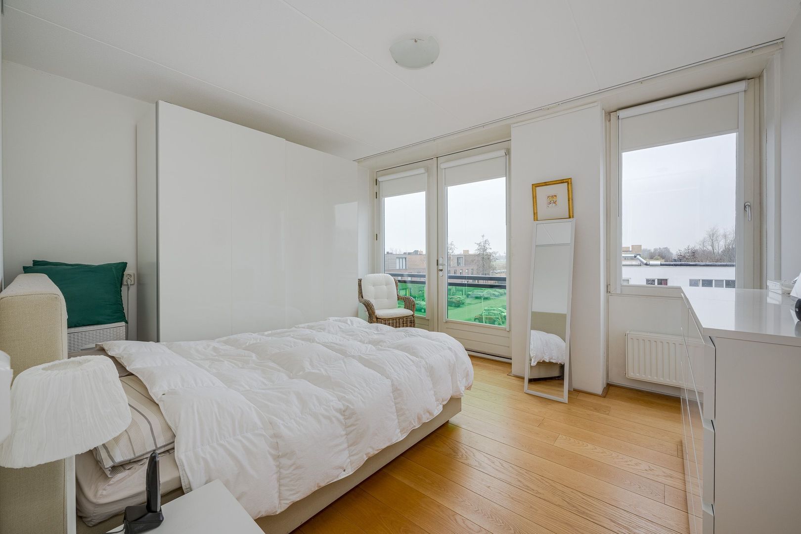 Verder zijn er twee slaapkamers, waarvan de grootste is voorzien van een Frans balkon. Beide slaapkamers zijn heerlijk licht; eigenlijk geldt dat voor de gehele woning, mede doordat de zon er de hele dag mooi omheen draait.