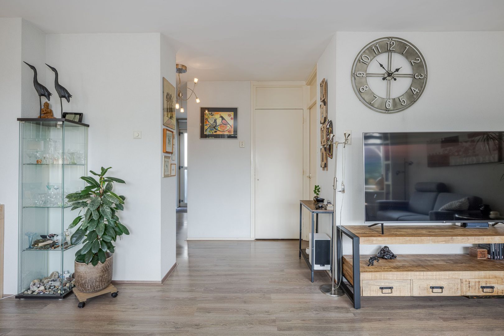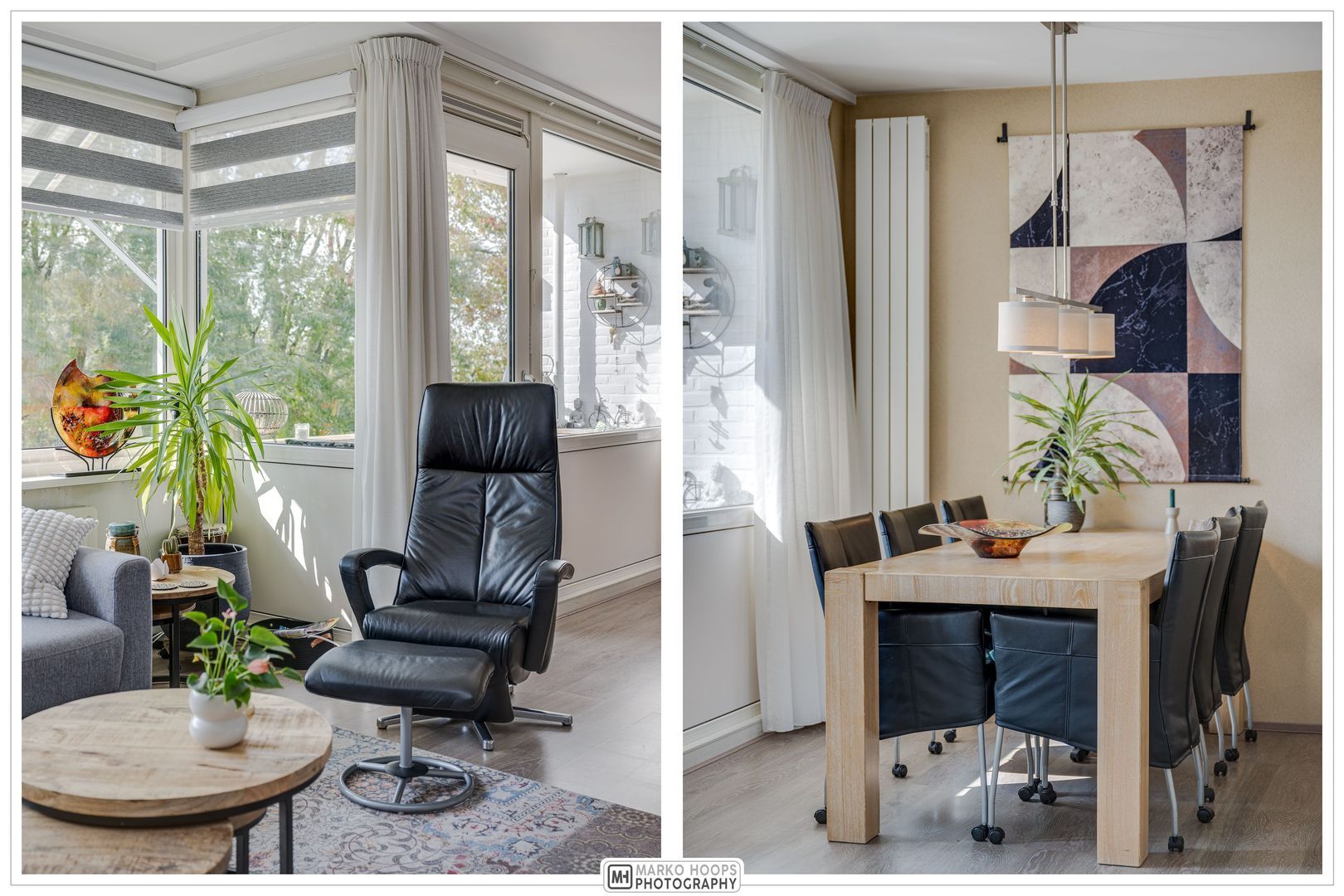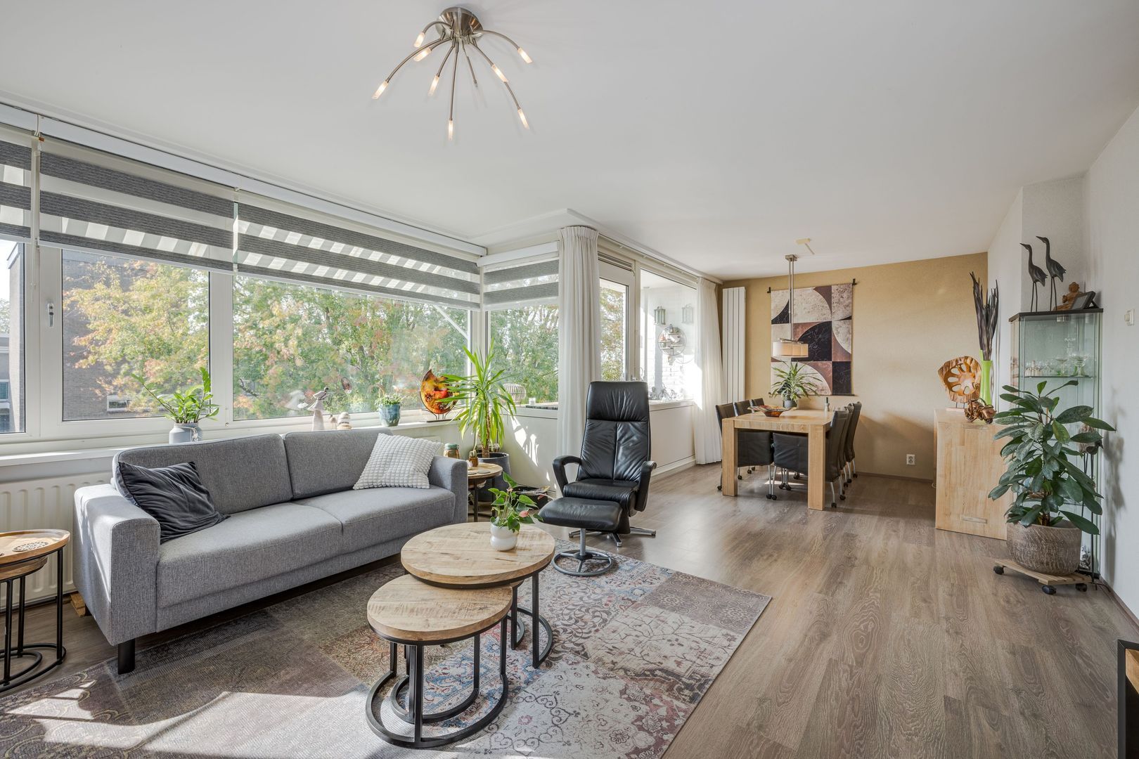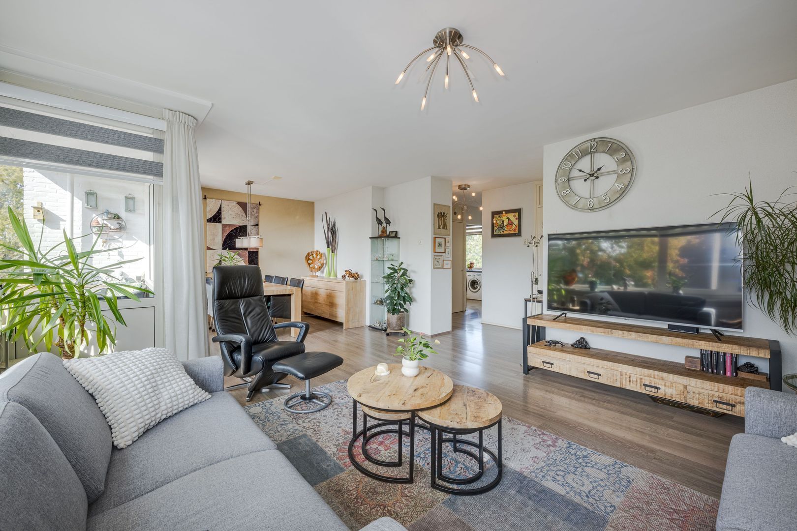 De ruime woonkamer is extra licht en open dankzij de vergrote doorgang naar de keuken. Vanuit de woonkamer loopt u door naar het balkon, waar u heerlijk kunt genieten van de zon. Het balkon is bovendien voorzien van een elektrisch bedienbaar zonnescherm. De tweede, grotere slaapkamer ligt aan de linkerzijde van de woning en biedt volop ruimte voor een royale kledingkast.