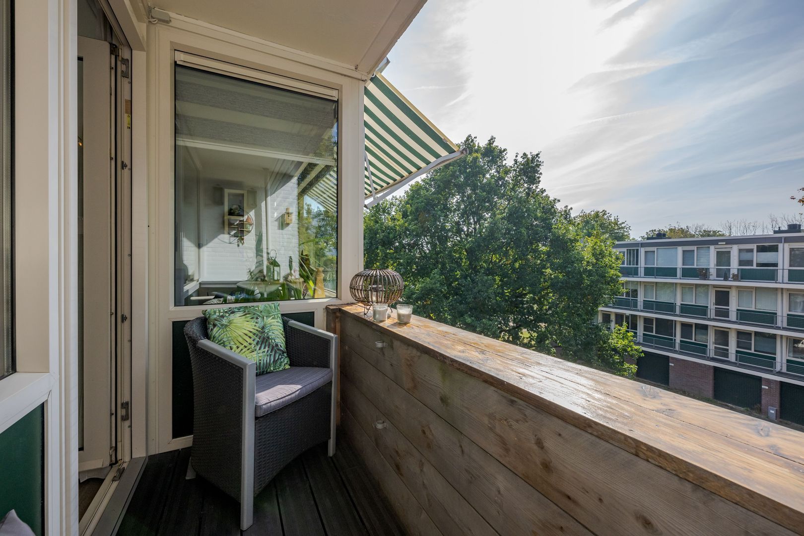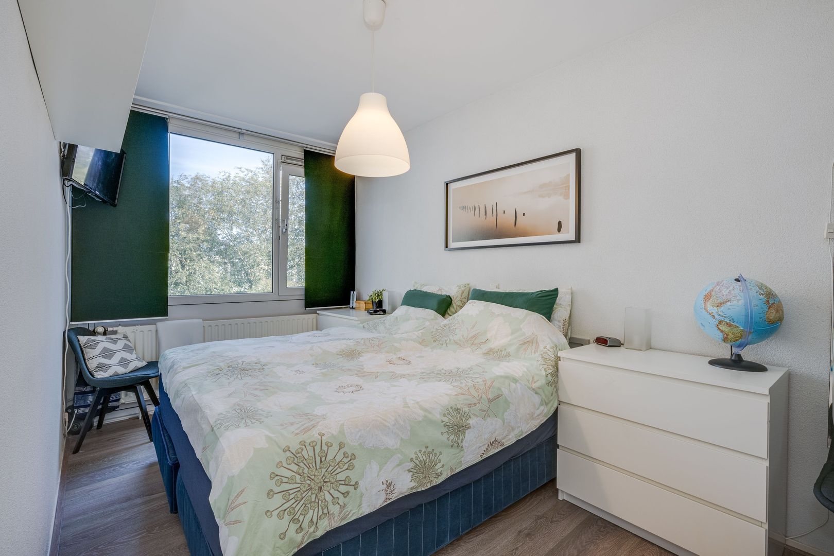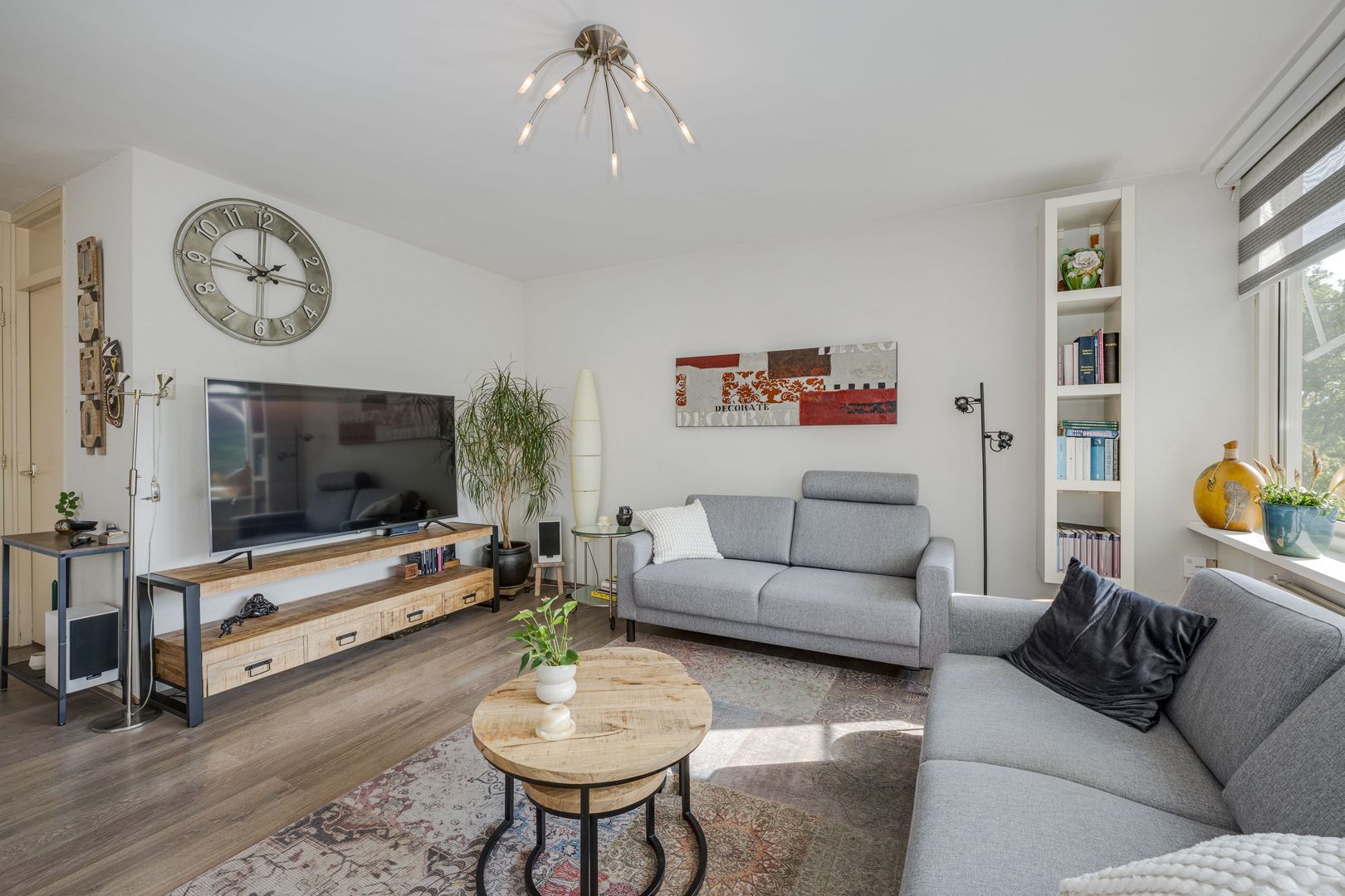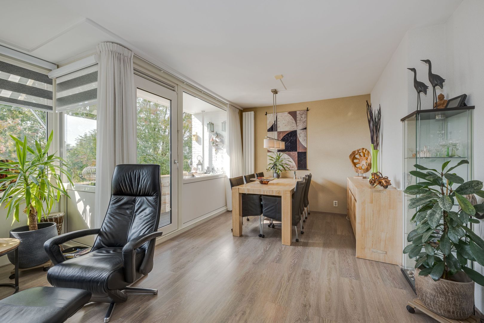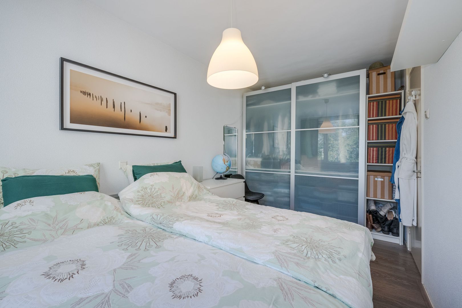 De ruime woonkamer is extra licht en open dankzij de vergrote doorgang naar de keuken. Vanuit de woonkamer loopt u door naar het balkon, waar u heerlijk kunt genieten van de zon. Het balkon is bovendien voorzien van een elektrisch bedienbaar zonnescherm. De tweede, grotere slaapkamer ligt aan de linkerzijde van de woning en biedt volop ruimte voor een royale kledingkast.