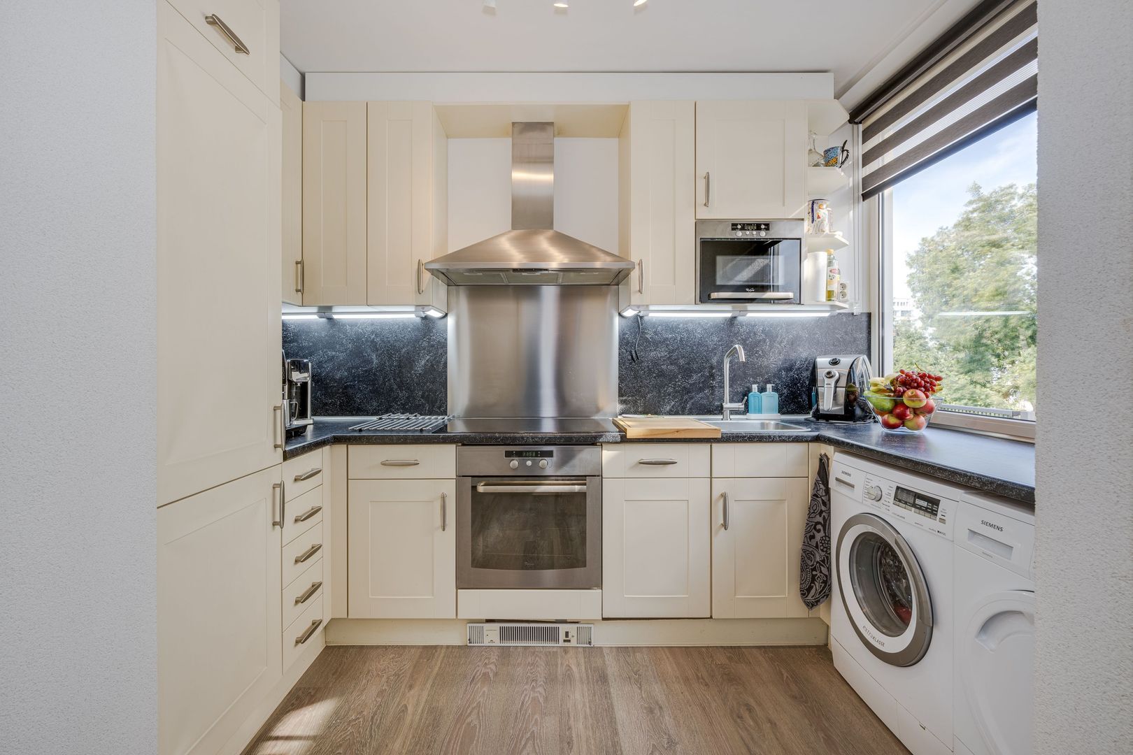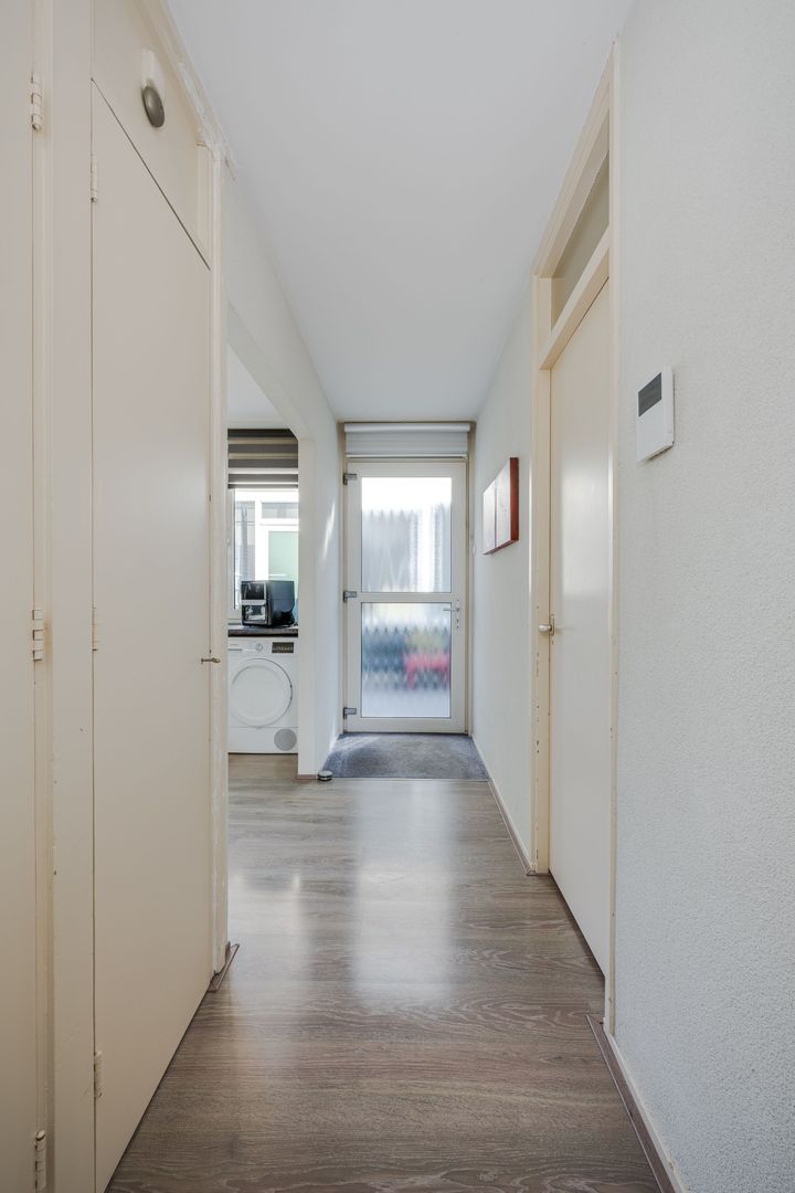 Bij binnenkomst in de centrale hal met brievenbussen en video-intercom bereikt u via de trap of de lift de derde verdieping. De entree van het appartement geeft toegang tot de open keuken, uitgerust met een inductiekookplaat, oven, magnetron en een half-size vaatwasser. Ook is er ruimte voor een wasmachine en droger. Aan de overzijde van de gang bevindt zich de eerste slaapkamer met vaste kast. Verder treft u de meterkast (8 groepen, 2x ALS) en de badkamer met inloopdouche, toilet en wastafelmeubel.